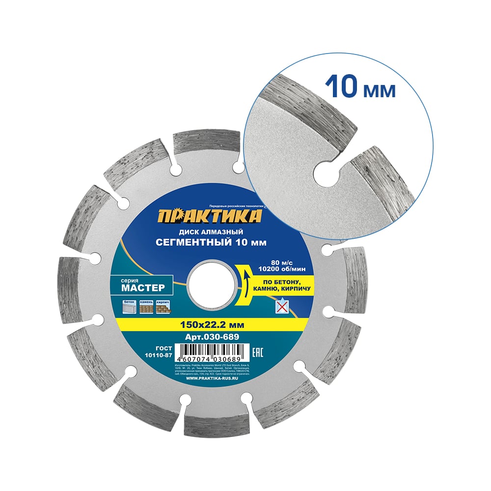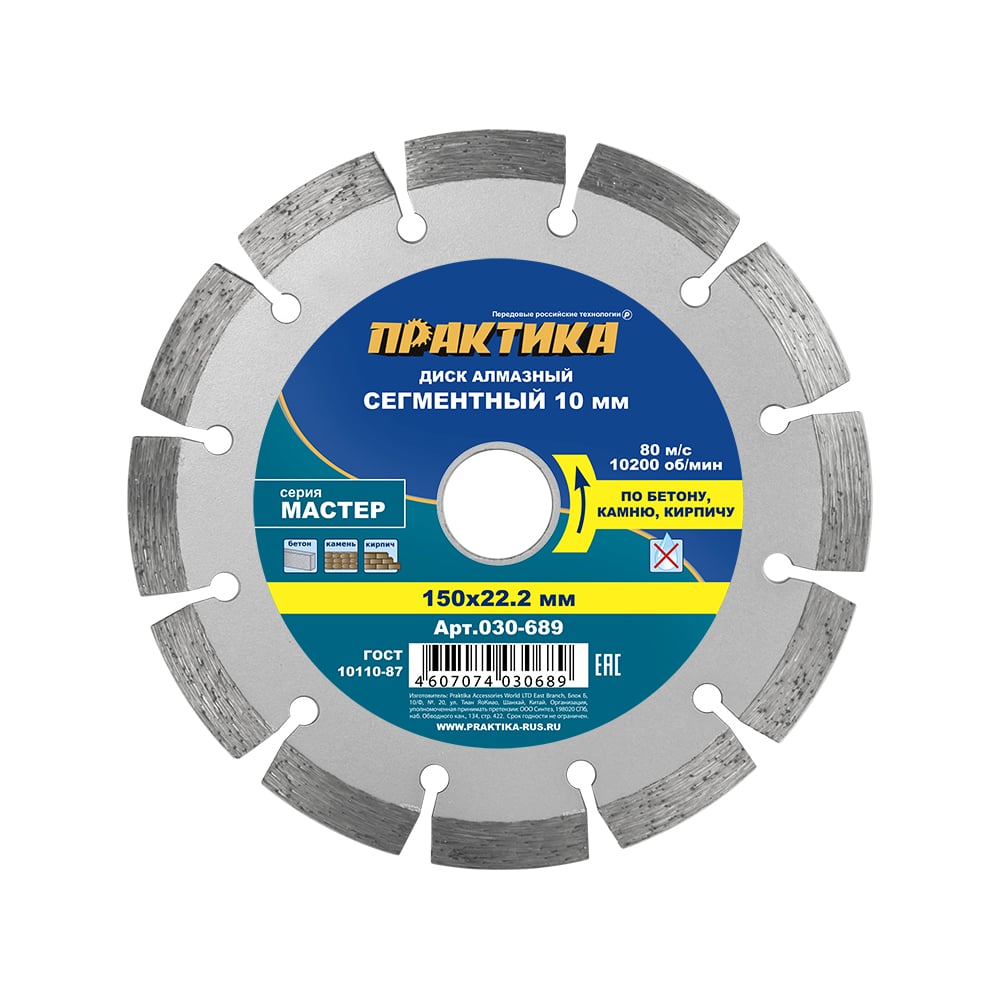 Диск алмазный сегментный Мастер (150х22.2 мм) ПРАКТИКА 030-689