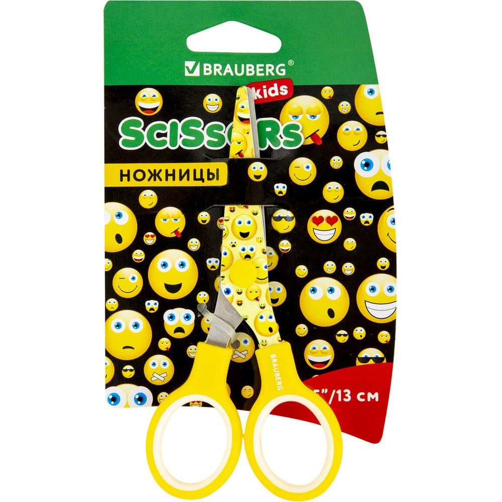 Ножницы BRAUBERG Kid Series Смайлики 130 мм, жёлто-белые 232274
