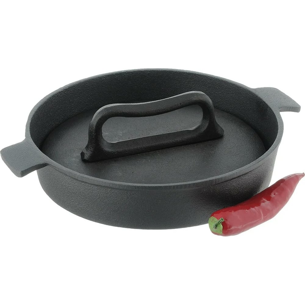 Сковорода MYRON COOK чугун для цыпленка табака с прессом 24 см GR24SET
