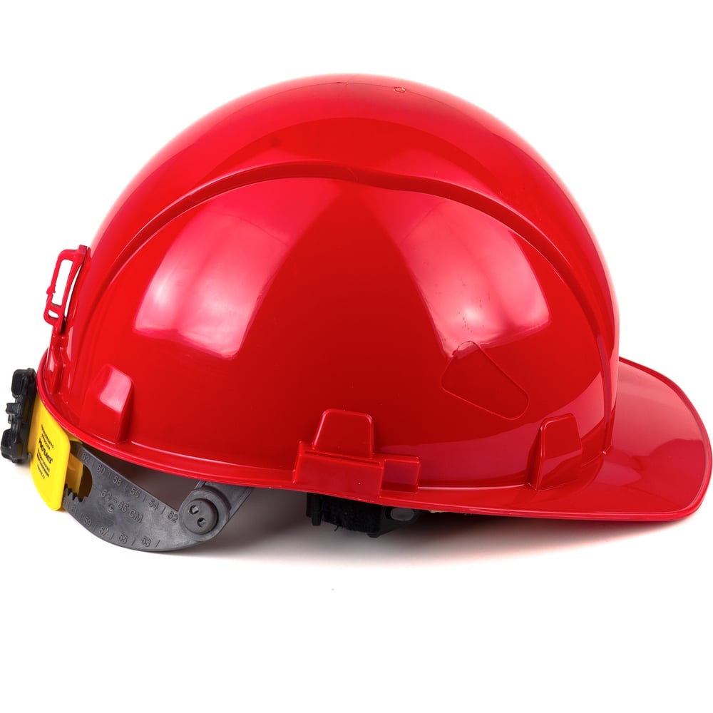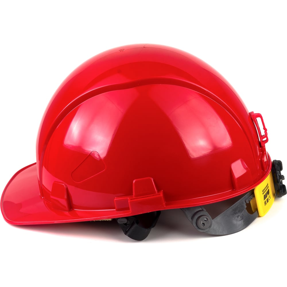 Материал Super Termotrek Цвет красный Тип каска Вес нетто 0.3 кг Регулировка оголовья храповый механизм Диапазон рабочих температур от -50 до +150 °С Вентиляция нет С козырьком есть С полями нет С щитком нет Крючки для крепления пелерины да Люминисцентные свойства нет Количество точек крепления лент оголовья 6 Защита от поражения электрическим током до 1000В Наличие амортизации есть Размер оголовья 51-65 см
