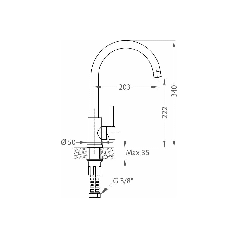 Цвет серый Тип установки настольный/на раковину Вес нетто 1 кг Стиль современный Материал корпуса латунь Серия Genesis Поворотный излив да Назначение для кухни Тип крепления на гайку Гибкий излив нет Длина излива 203 мм Высота смесителя 340 мм Лейка нет Термостат нет Встраиваемый нет Подводка в комплекте гибкая Аэратор да Переключатель на фильтр нет Тип смесителя однорычажный Форма излива воды традиционная Запорный клапан керамический картридж Форма смесителя округлая Выдвижной излив нет Излив есть Складной нет С щеткой нет Двойной излив нет Размер крепления G3/8 Направление струи под углом Диаметр отверстия в раковине 35 мм Высота излива 222 мм Расположение термостата без термостата