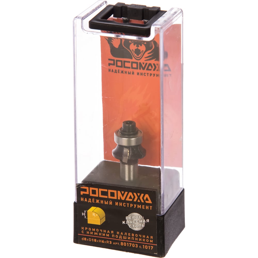 Фреза кромочная калевочная с нижним подшипником серия 1017 (18x6 мм; R3 мм; хвостовик 8 мм) Росомаха 801703
