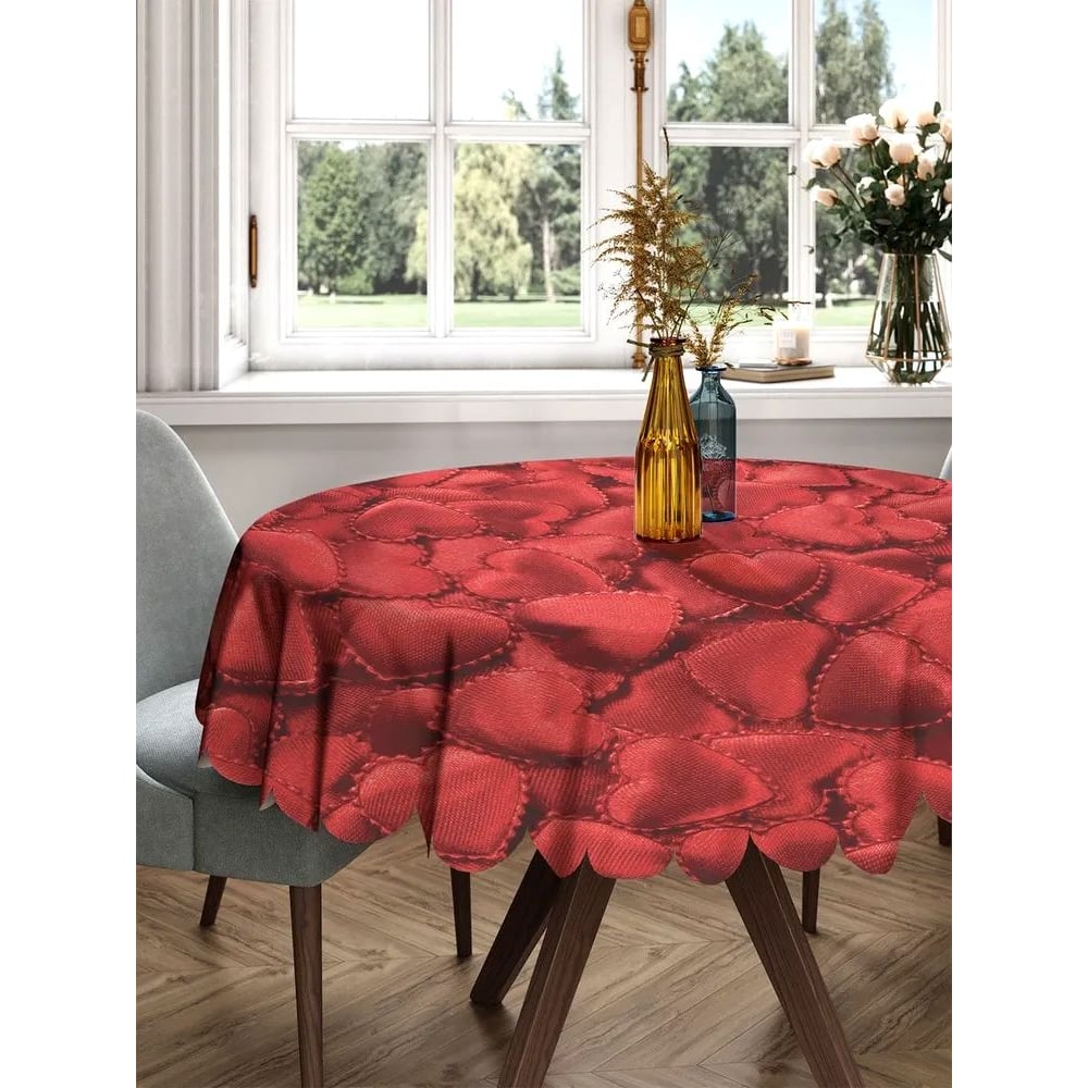 Скатерть круглая тканевая JOYARTY на стол с рисунком Ажурные сердечки 150х150 см rtcf01_422617_150x150