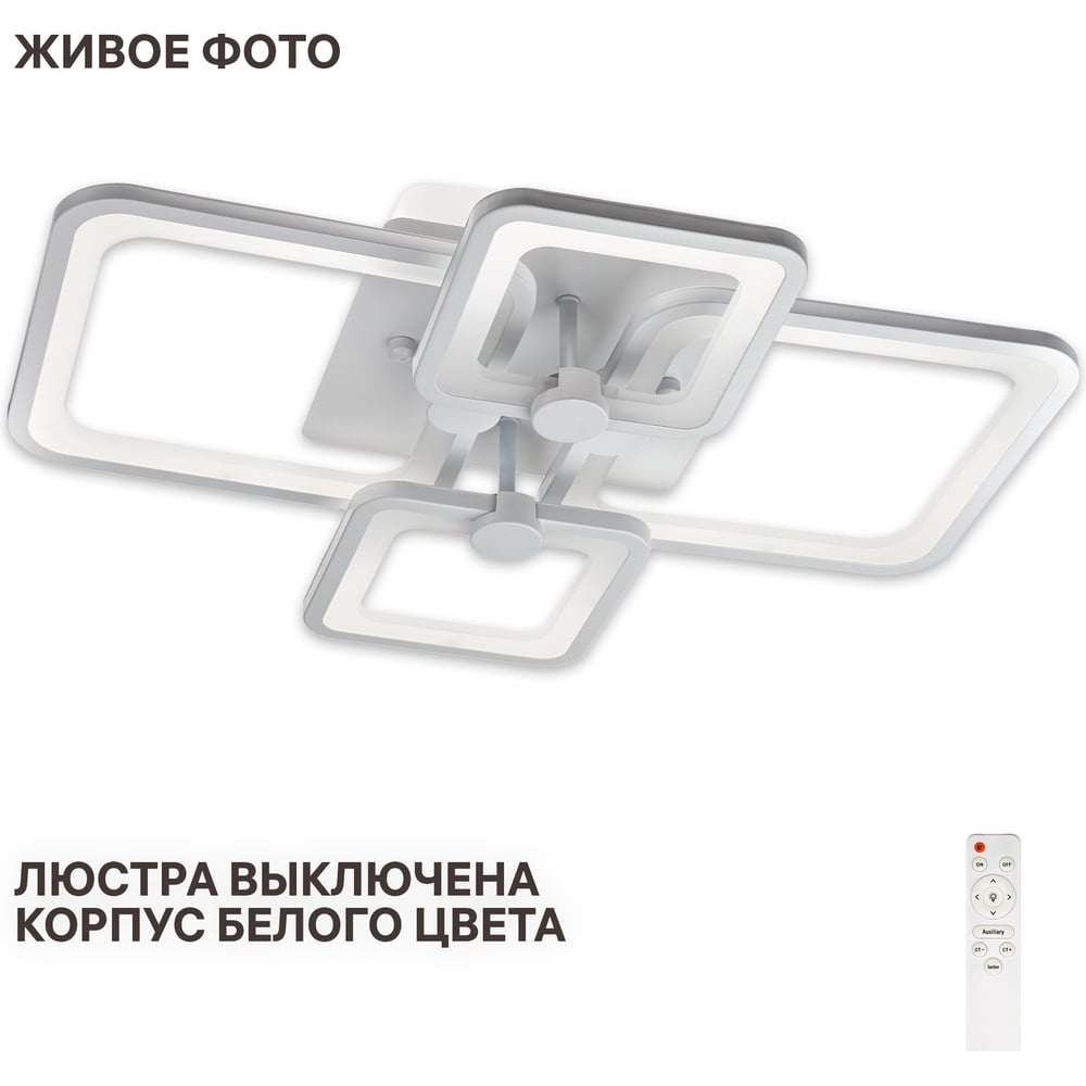 Люстра RITTER сд диммируемая с ДУ 3 режима, 590x400x120мм, 114Вт, 2700+6400K/4200K/6400+2700K, 33м2, белый, 52016 0
