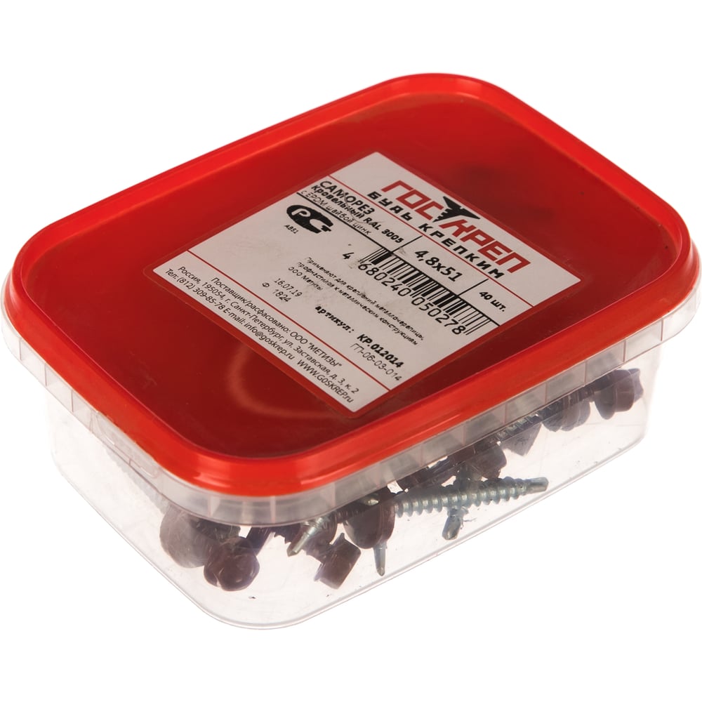 Кровельный саморез ГОСКРЕП 4.8х51 RAL 3005 красное вино, 40 шт., пл.конт 280 мл 2-0017590
