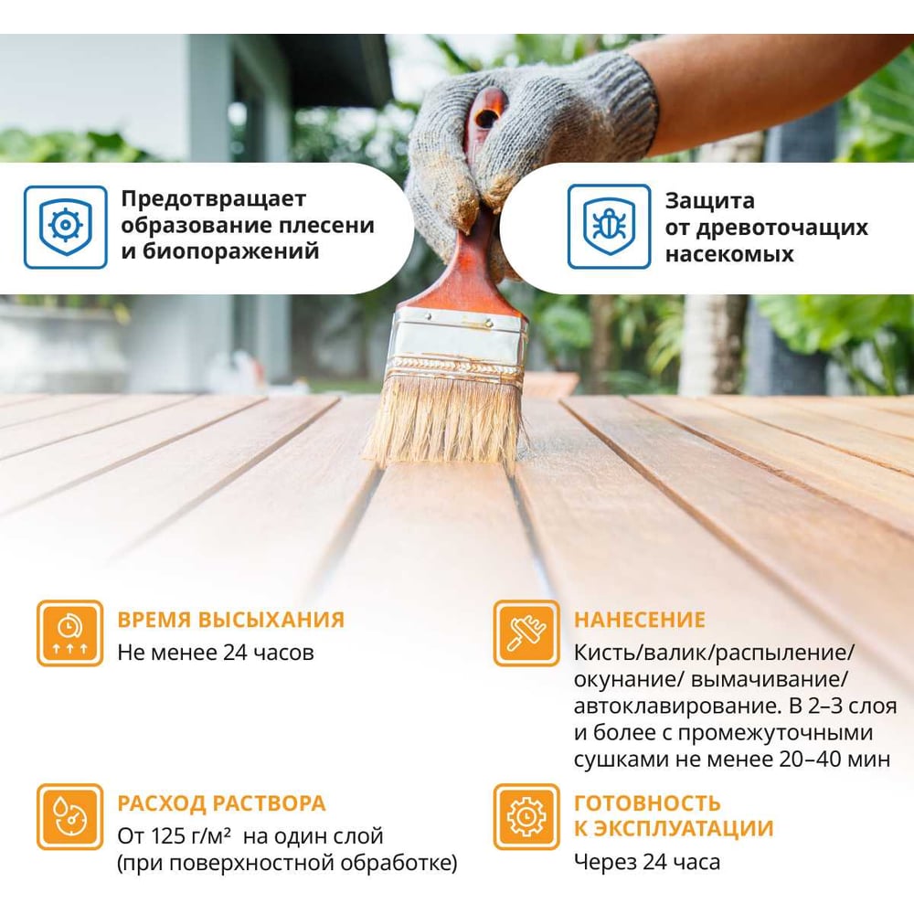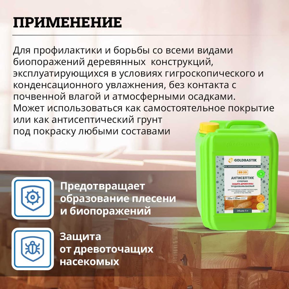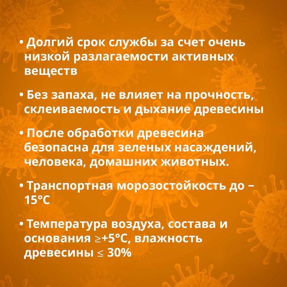 | Состав | фунгицидные активные вещества и вспомогательные компоненты в водной среде. Содержит самые современные, экологически безопасные биоциды |