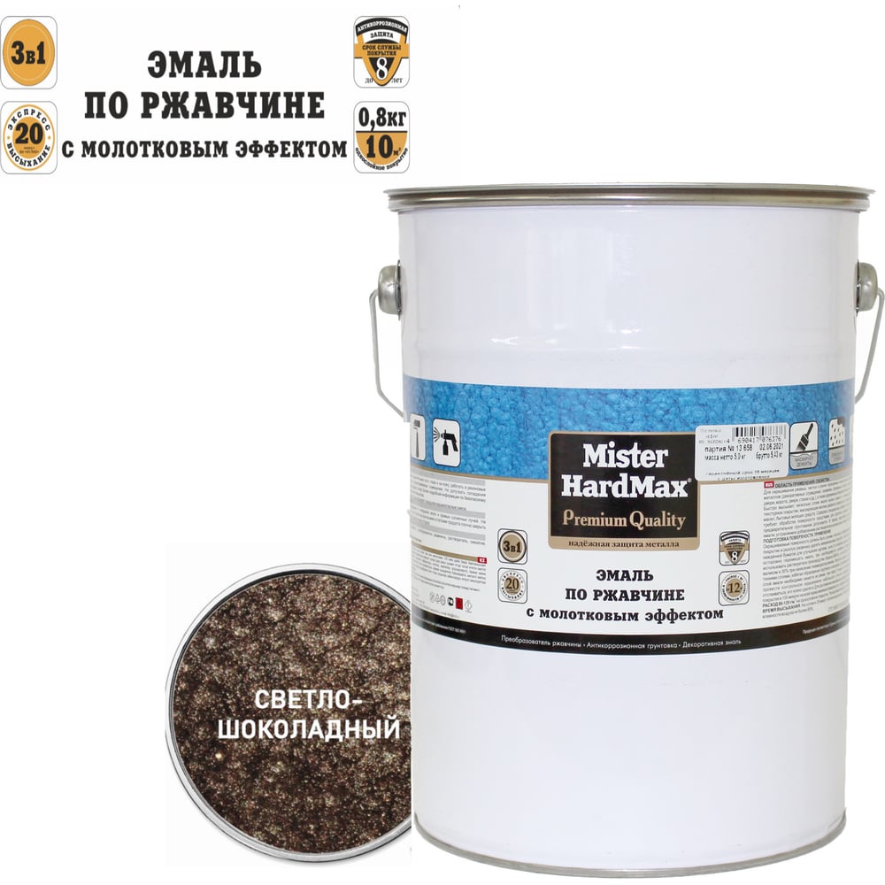 Эмаль по ржавчине с молотковым эффектом HardMax светло-шоколадная, барабан 5 кг, 1 шт. 4690417076352