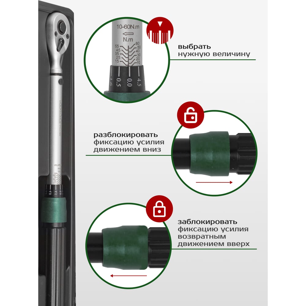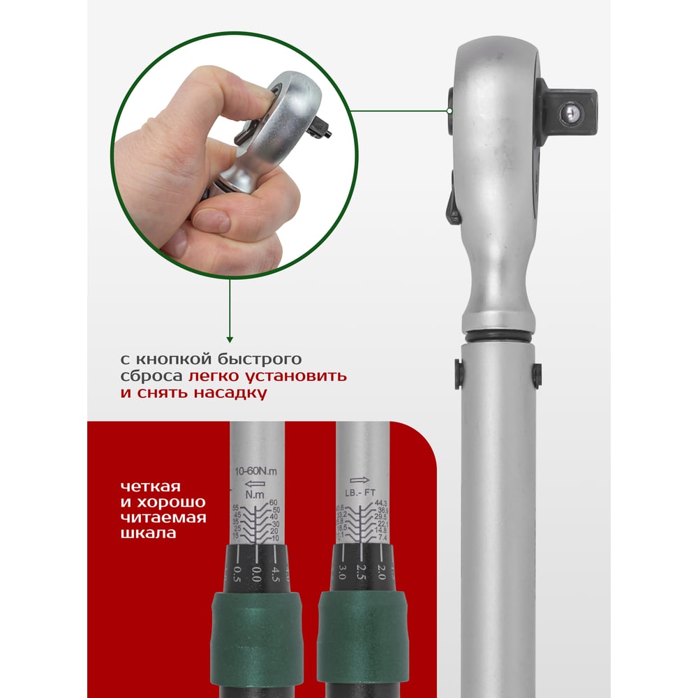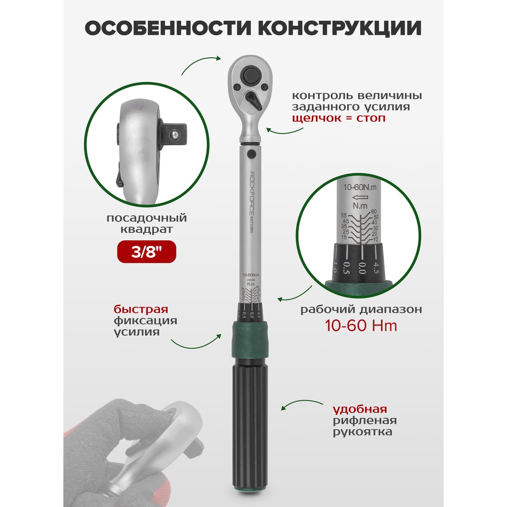 Динамометрический ключ ROCKFORCE щелчкового типа Premium 10-60Нм, 3/8 RF-6473380 RF-6473380(48611)