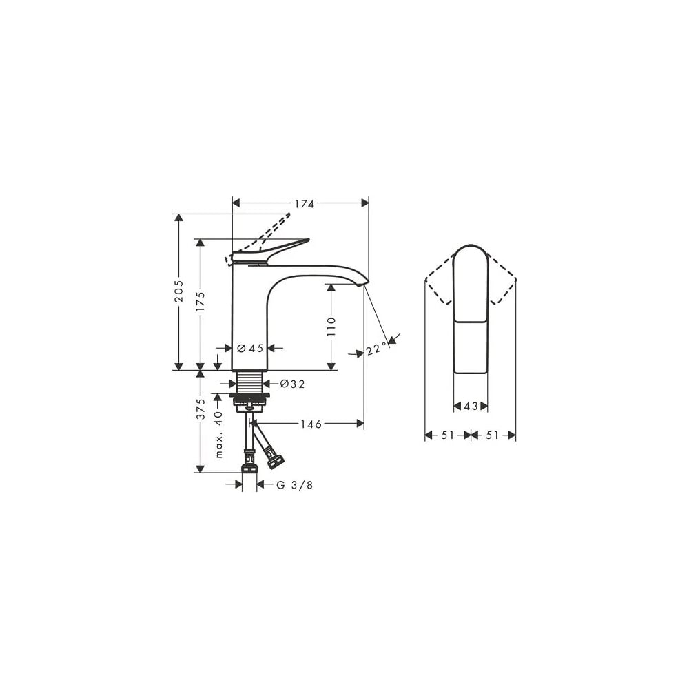 Смеситель для раковины Hansgrohe Vivenis 110 без донного клапана, матовый черный 75022670 00000094149