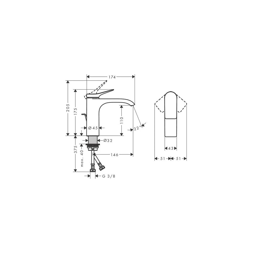 | Диаметр отверстия в раковине | 32 мм |