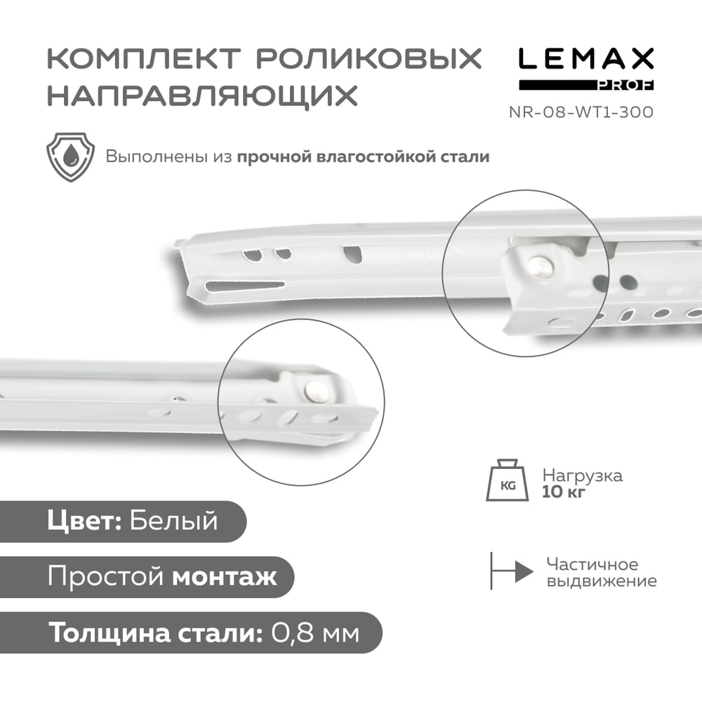 Роликовые направляющие Lemax PROF комплект, 300 мм, толщина 0.8 мм, белый NR-08-WT1-300