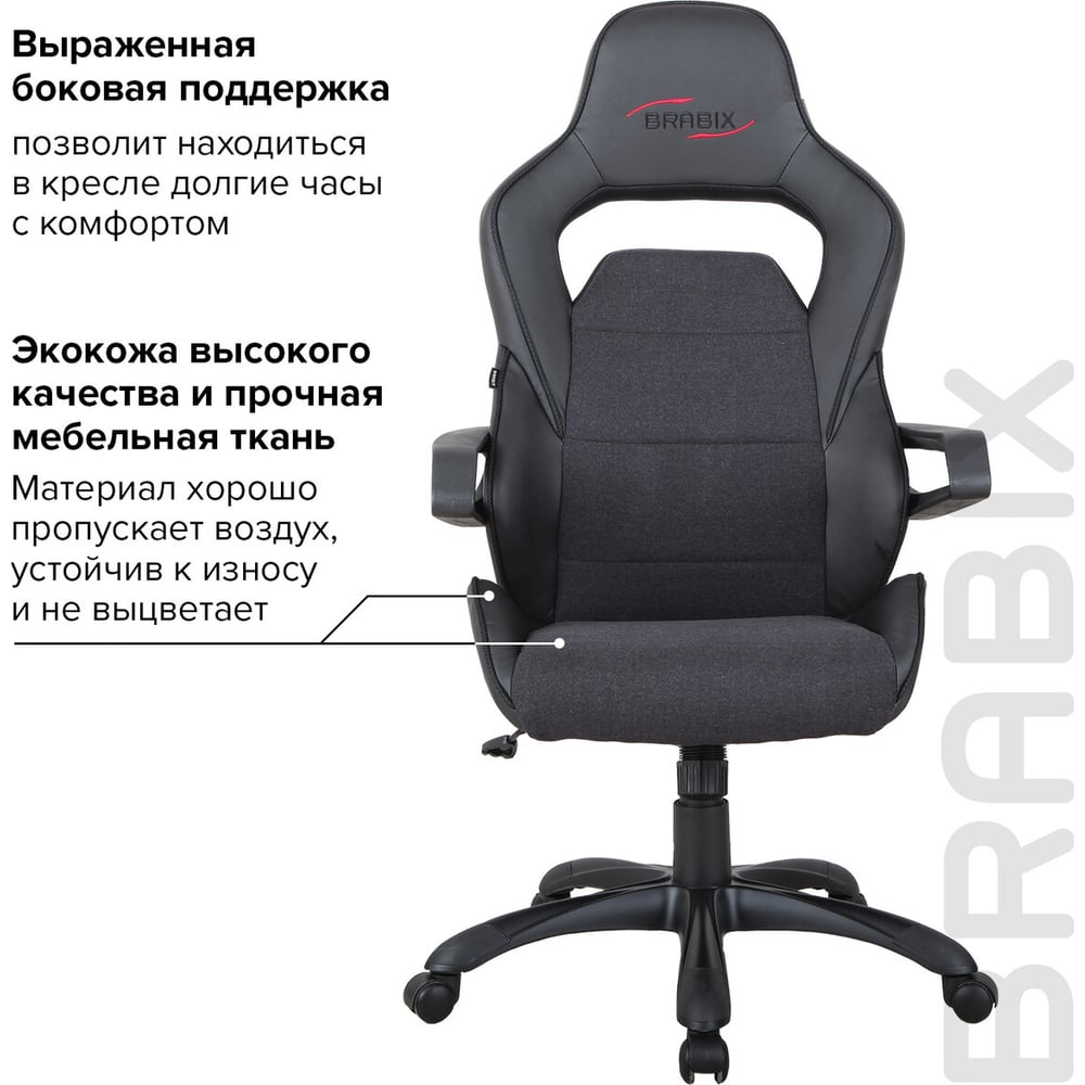 Компьютерное геймерское офисное кресло BRABIX Nitro GM-001, с подлокотниками, экокожа 531817