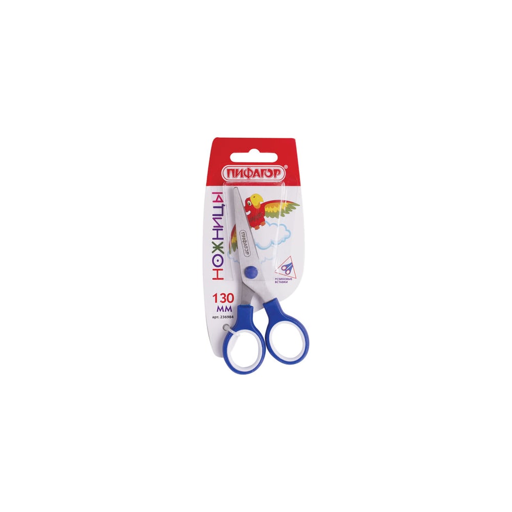 Ножницы 24 шт в упаковке Пифагор 130 мм резиновые вставки картонная упаковка с подвесом ассорти 236984
