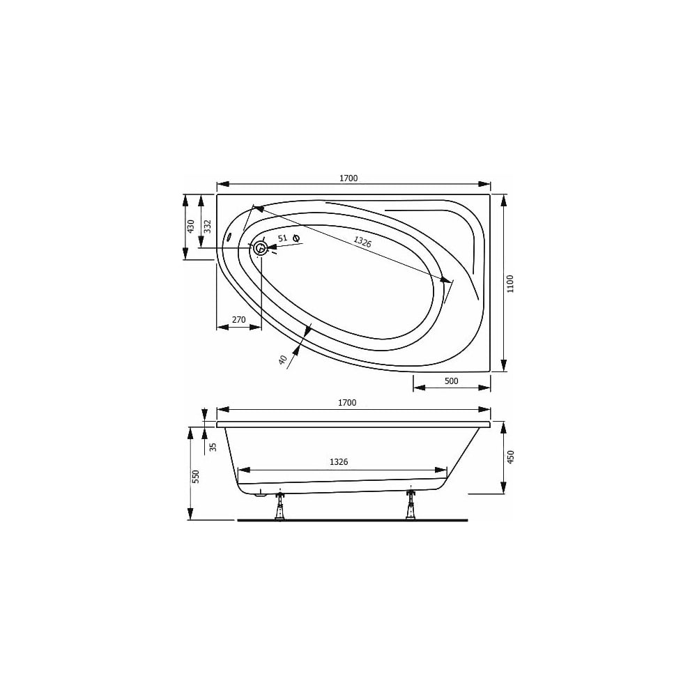 | Глубина ванны | 450 мм |