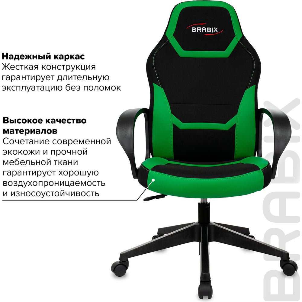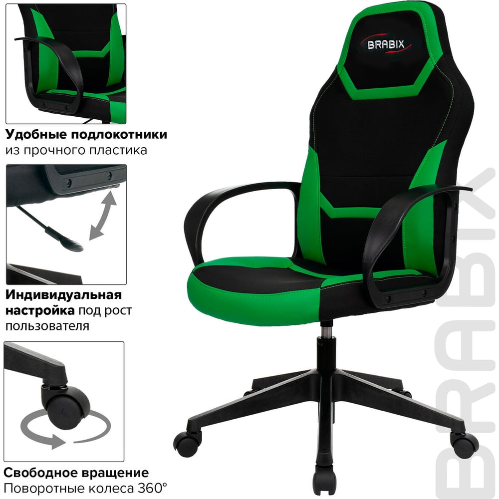 Компьютерное кресло BRABIX Alpha GM-018, ткань/экокожа, черное/зеленое 532639