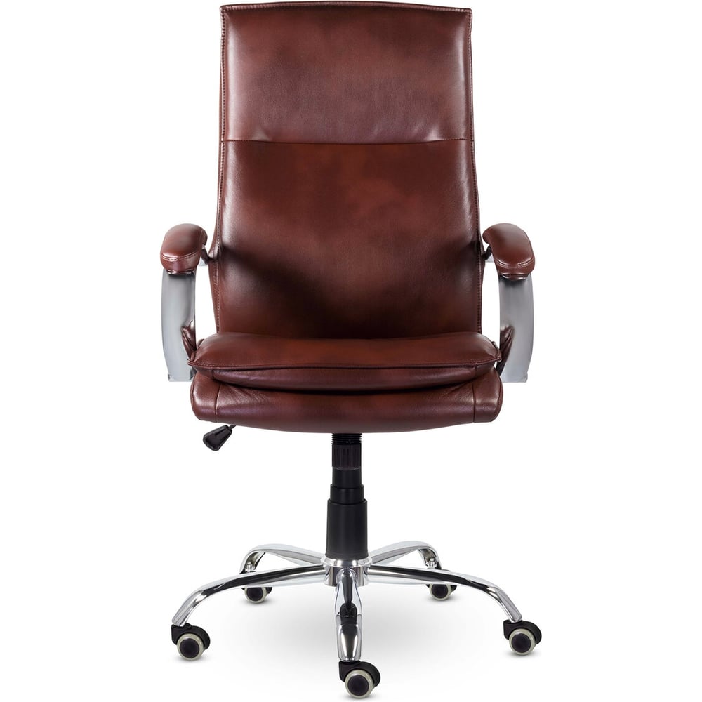 Габариты без упаковки 1260x650 мм Вес нетто 20 кг Стиль классический Регулировка высоты сиденья да Требует сборки да Подлокотники да Подъемный механизм да Механизм качания нет Регулировка высоты спинки нет Регулировка высоты подлокотников нет Механизм вращения да Подголовник нет Регулировка наклона спинки да Подставка для ног нет Max нагрузка 130 кг Ширина сиденья 530 мм Глубина сиденья 500 мм Ширина спинки 530 мм Высота спинки 720 мм Min высота сиденья 470 мм Мах высота сиденья 570 мм Цвет спинки коричневый Материал крестовины хромированная сталь Материал подлокотников металл/экокожа Цвет сиденья коричневый Материал обивки экокожа Колеса есть