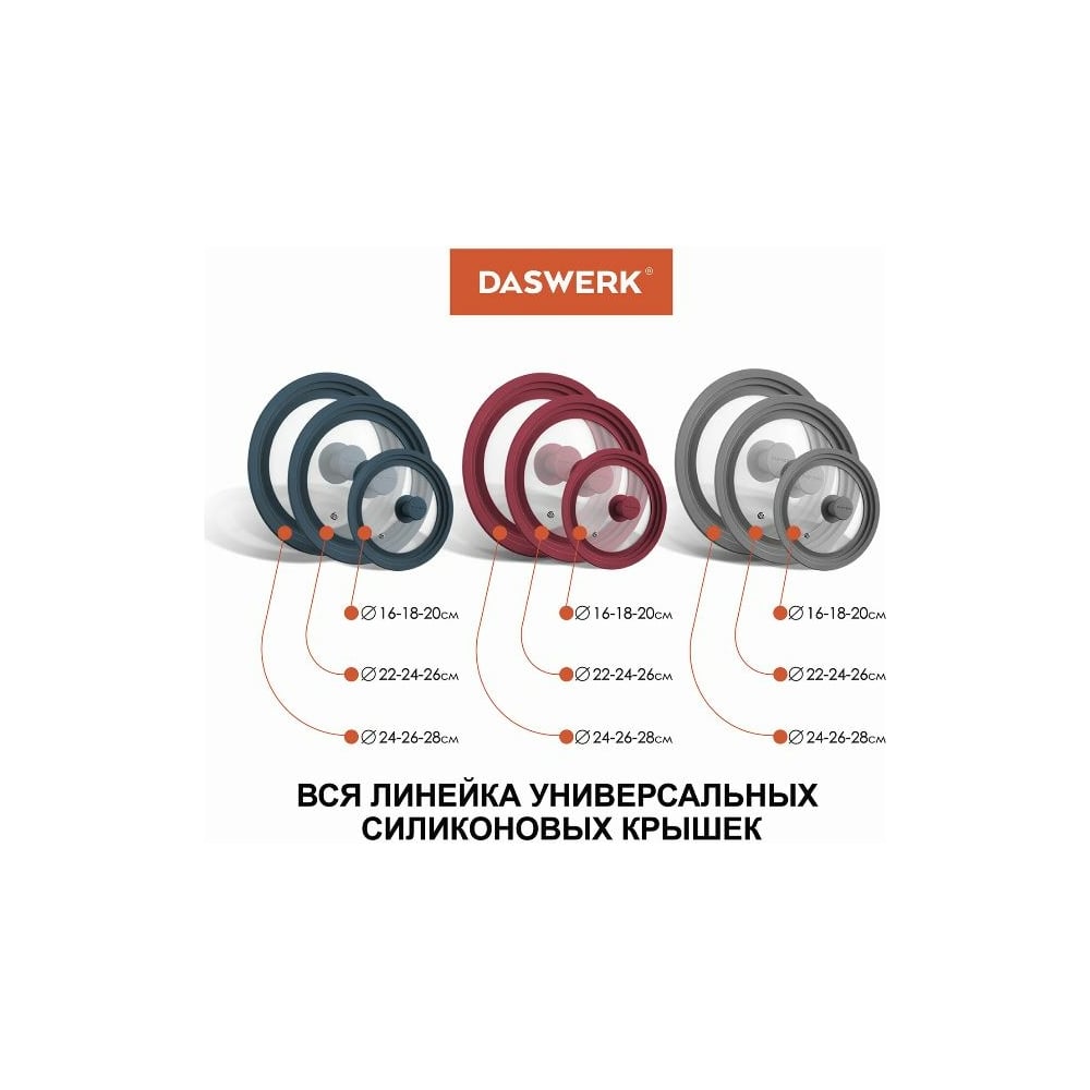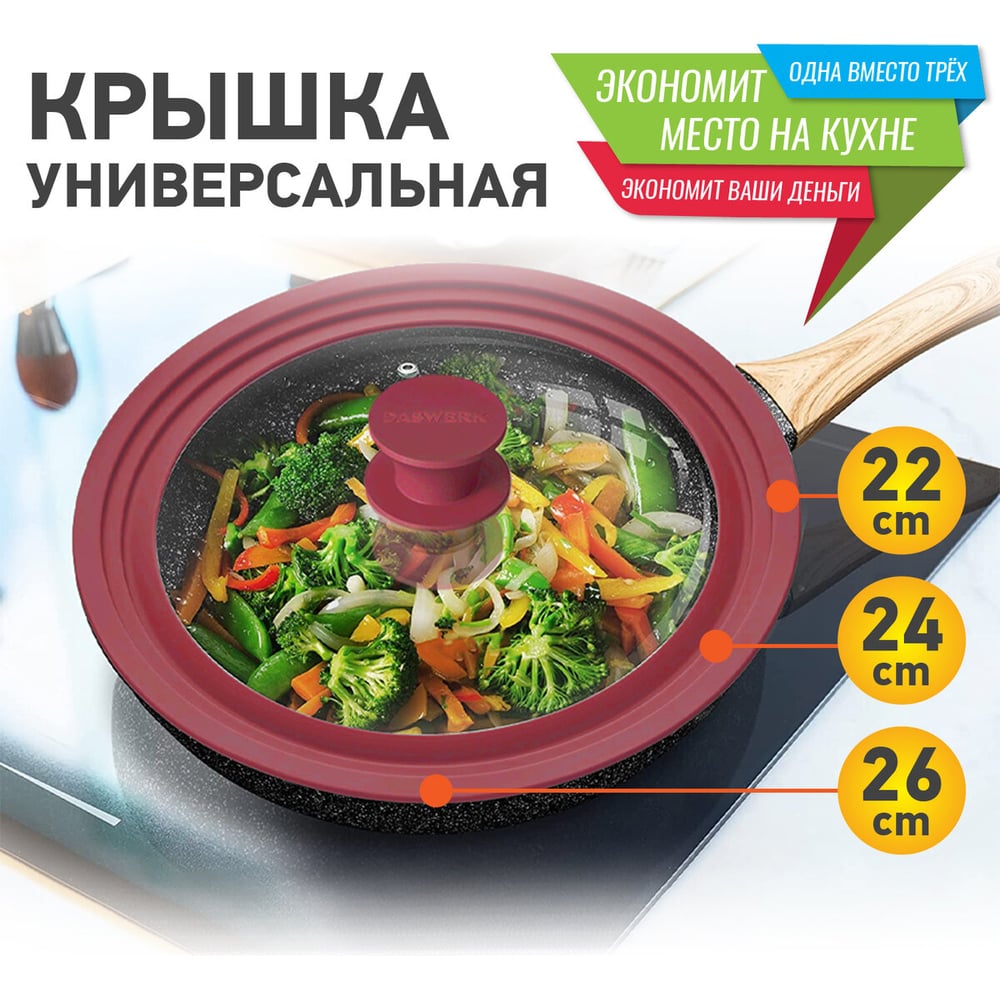 Универсальная крышка для любой сковороды и кастрюли DASWERK 3 размера (22-24-26 см) бордовая 607587