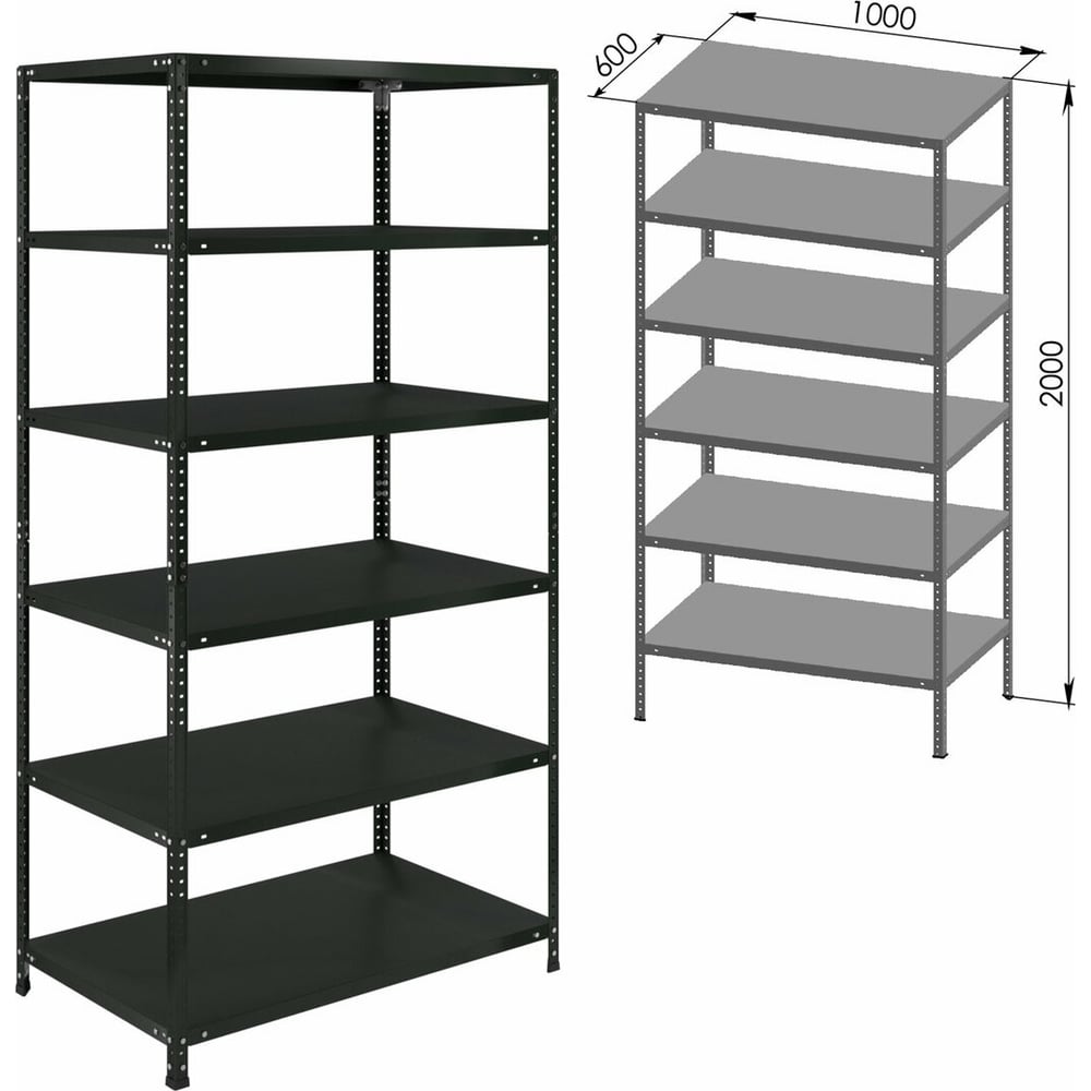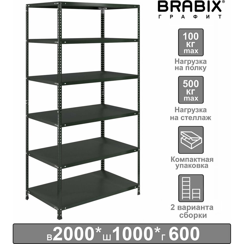 Металлический стеллаж BRABIX "ГРАФИТ MS KD-195/60-6", лофт, 2000x1000x600 мм, 6 полок 291274
