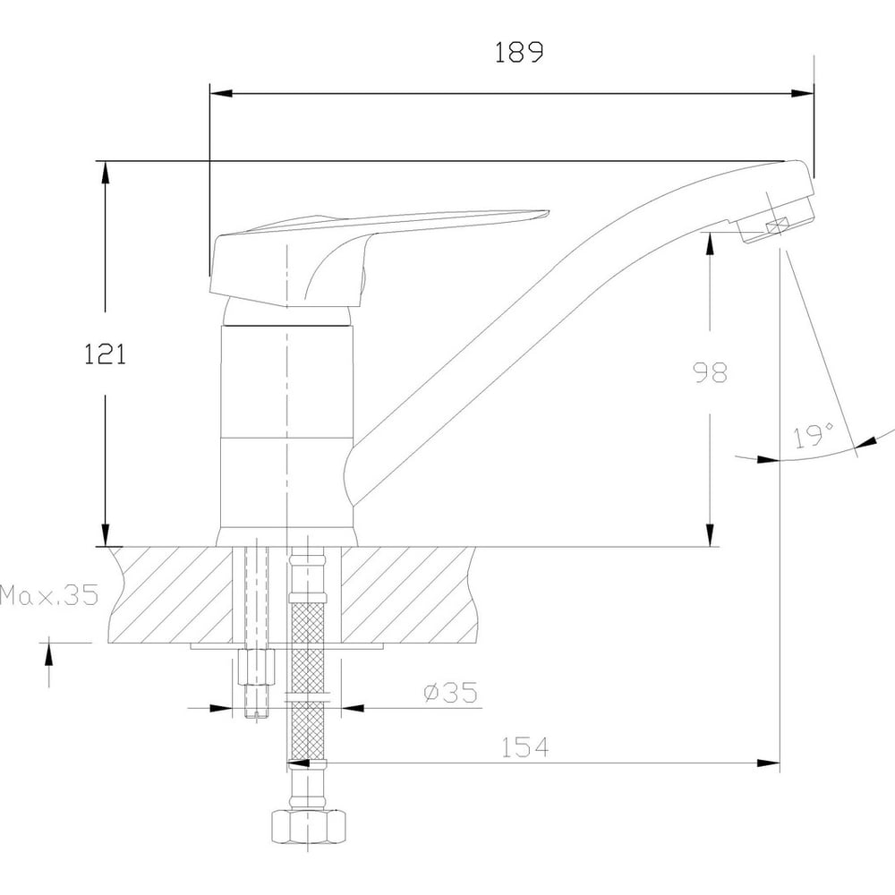 | Мах толщина столешницы | 35 мм |