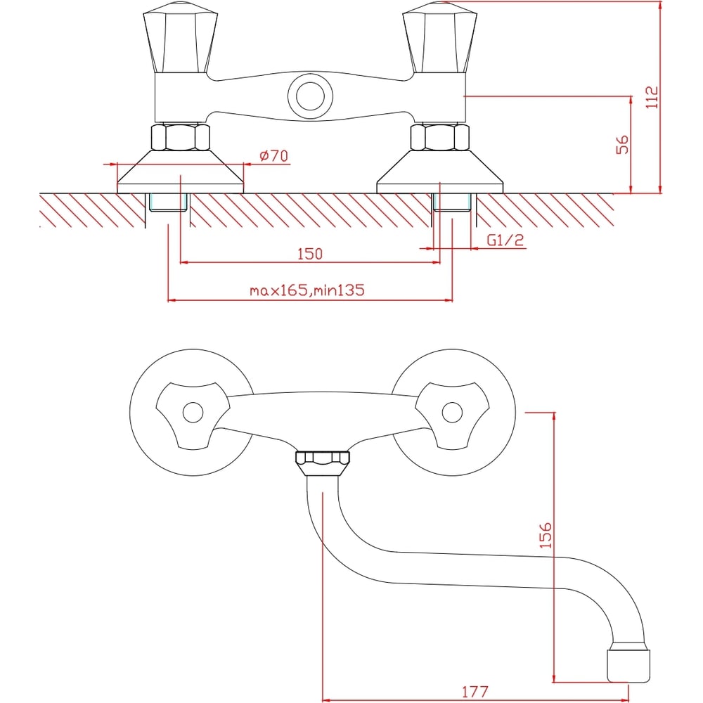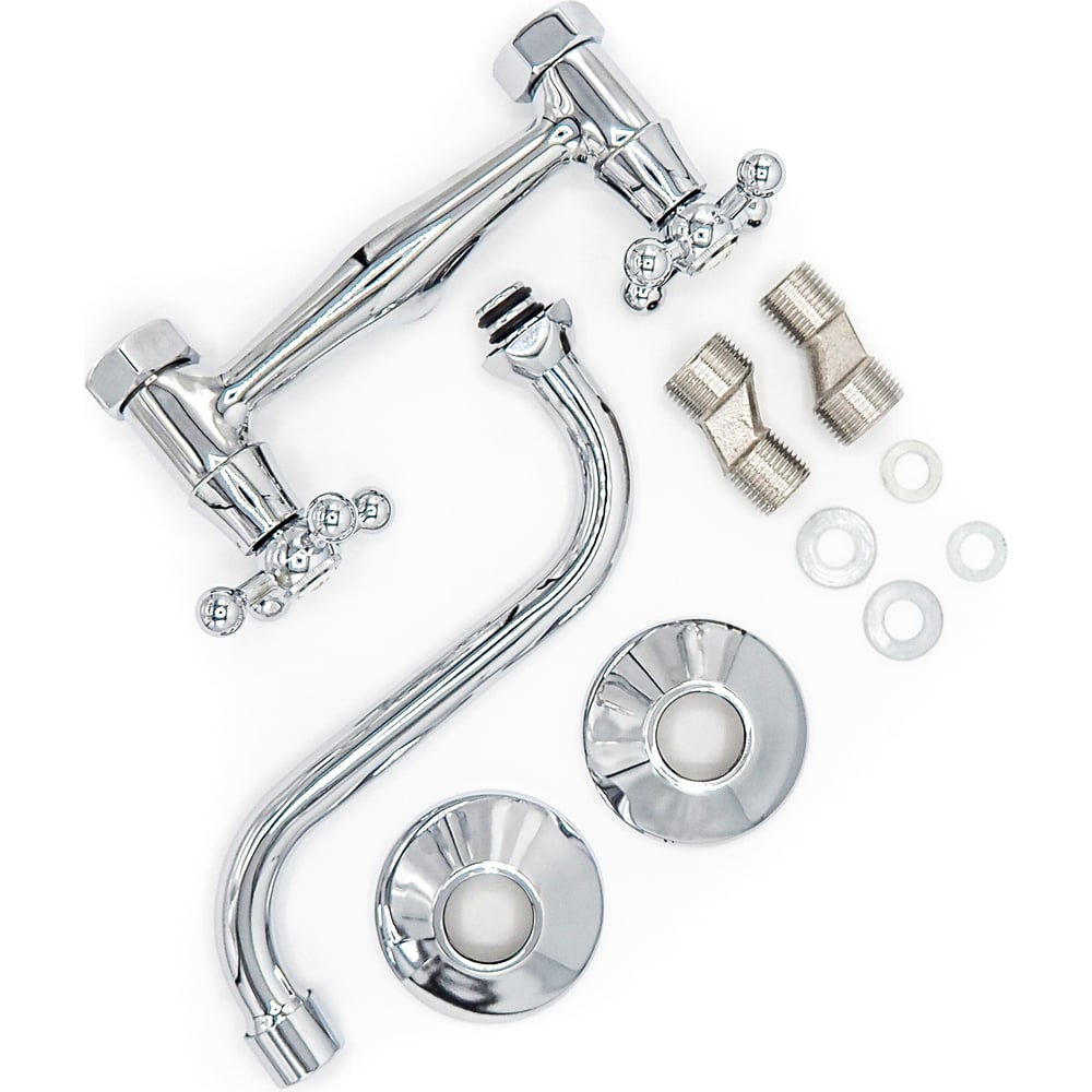 Покрытие глянцевое Цвет хром Тип установки настенный Стиль современный Материал корпуса цинк Поворотный излив да Назначение для кухни Тип крепления на эксцентриках Гибкий излив нет Длина излива 177 мм Высота смесителя 156 мм Лейка нет Термостат нет Встраиваемый нет Подводка в комплекте нет Аэратор да Переключатель на фильтр нет Тип смесителя двухрычажный Форма излива воды традиционная Запорный клапан керамическая кран-букса Форма смесителя округлая Выдвижной излив нет Излив есть Складной нет С щеткой нет Двойной излив нет Диаметр картриджа нет мм Размер крепления G1/2 Направление струи вертикальное Диаметр отверстия в раковине нет мм Форма маховиков треугольник ГОСТ/DIN нет Расположение термостата без термостата