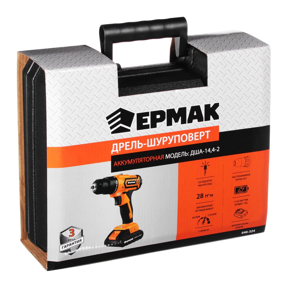 Аккумуляторная дрель-шуруповерт ЕРМАК ДША-14.4-2 646-324