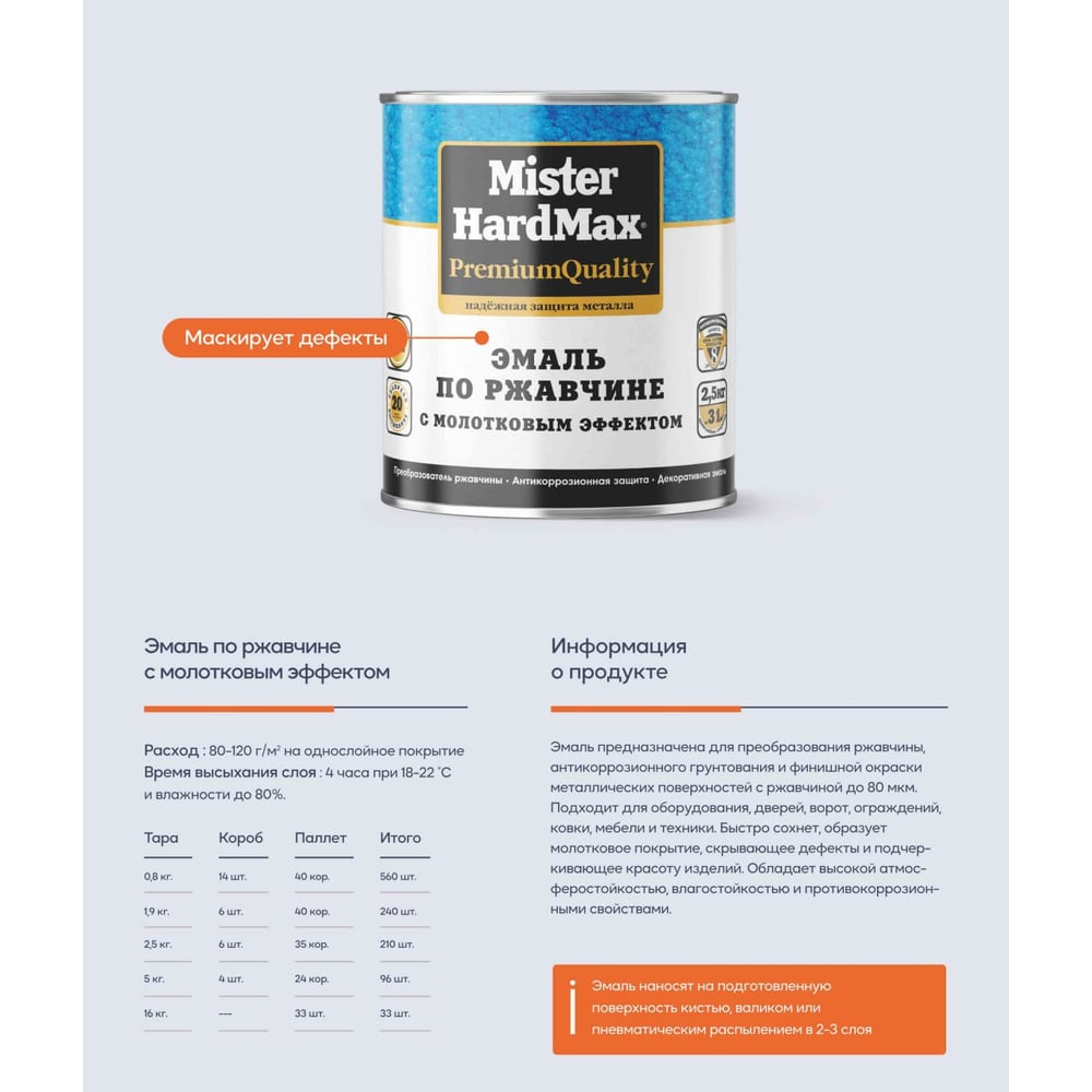 Эмаль по ржавчине с молотковым эффектом HardMax RAL 5015 синий, банка 0,8 кг, 1 шт. 4690417077687