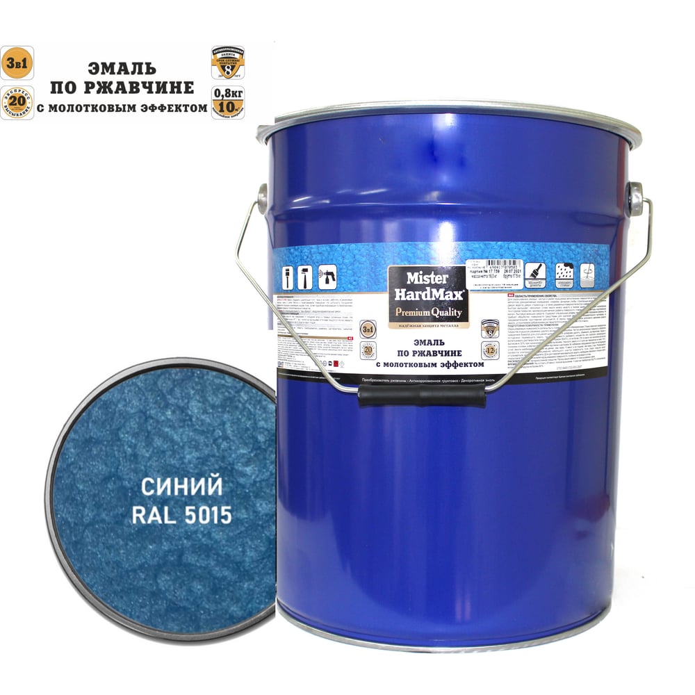 Эмаль по ржавчине с молотковым эффектом HardMax RAL 5015 синий, барабан 16 кг 4690417077779