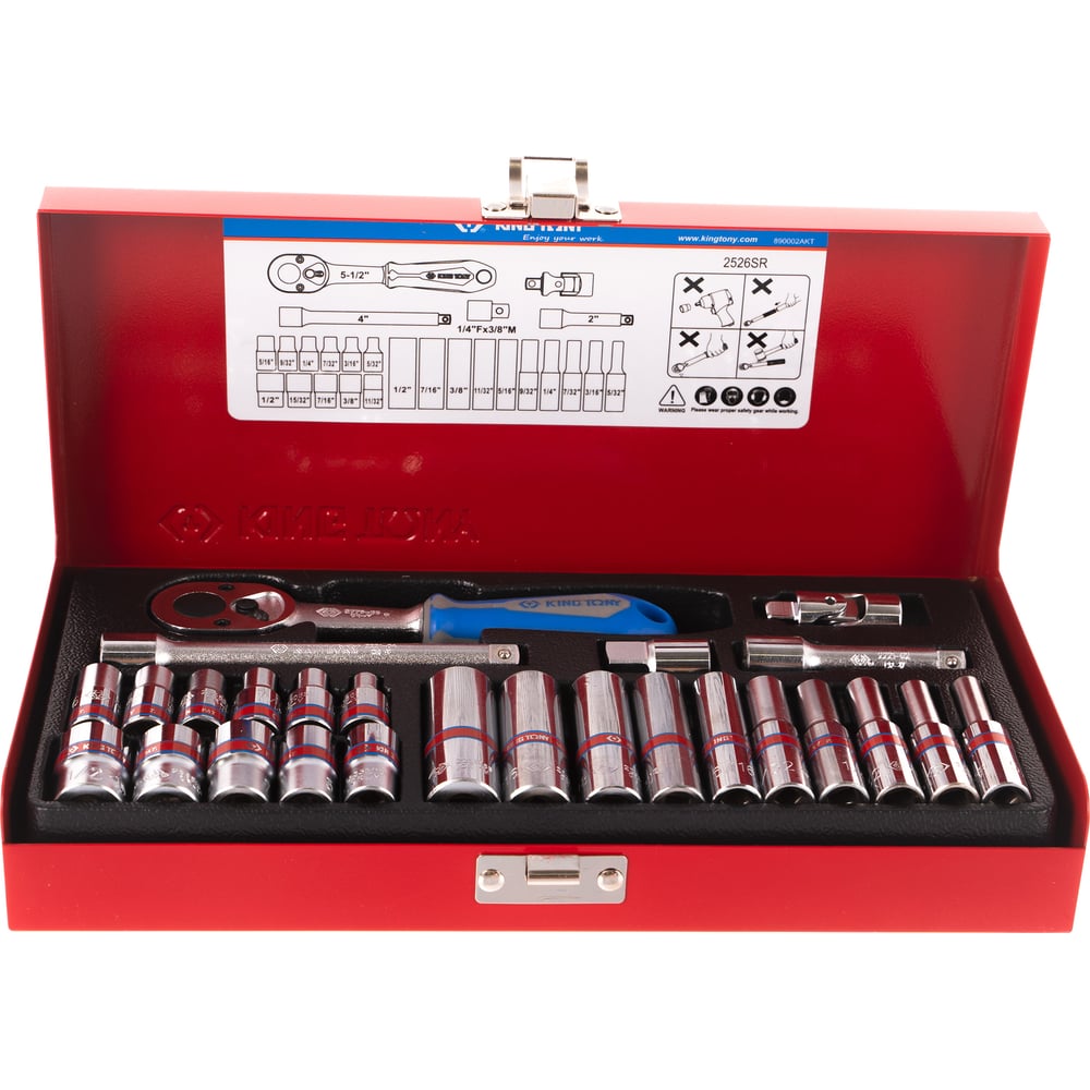 Набор шестигранных торцевых головок с принадлежностями 1/4", 5/32"-1/2", 26шт KING TONY 2526SR