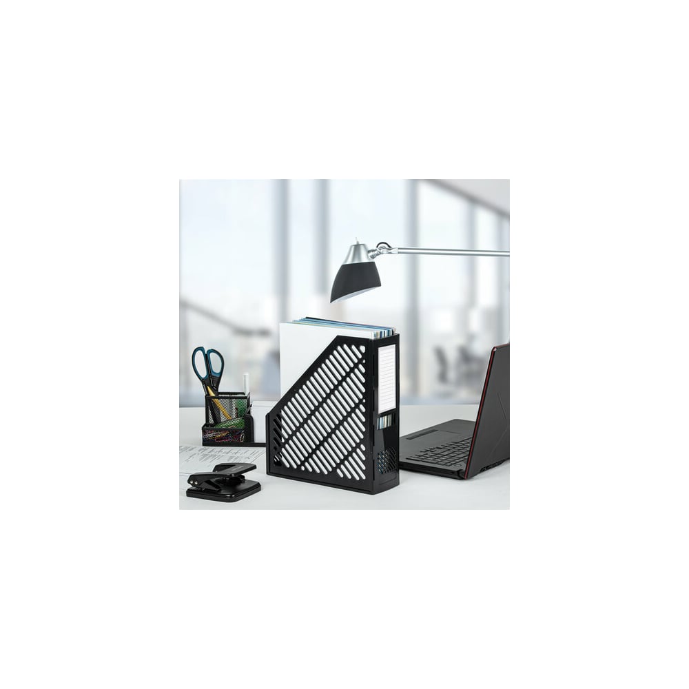 Вертикальный лоток для бумаг BRAUBERG Office-Expert, 90 мм, сетчатый, сборный, черный 238019
