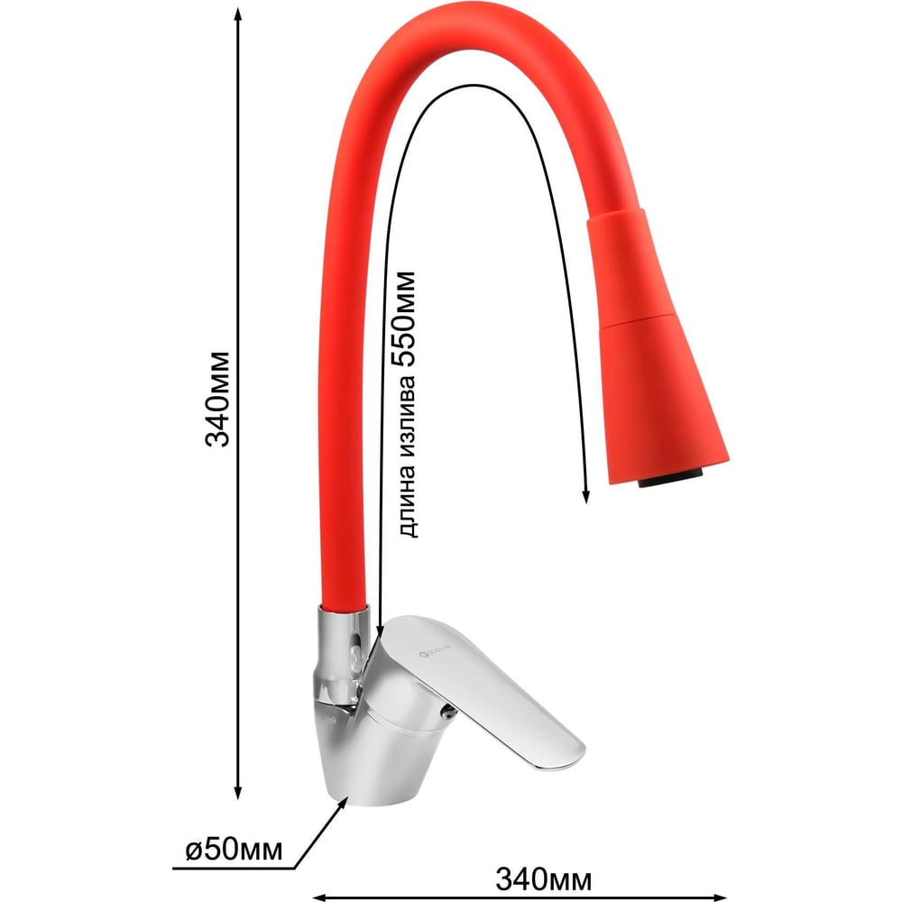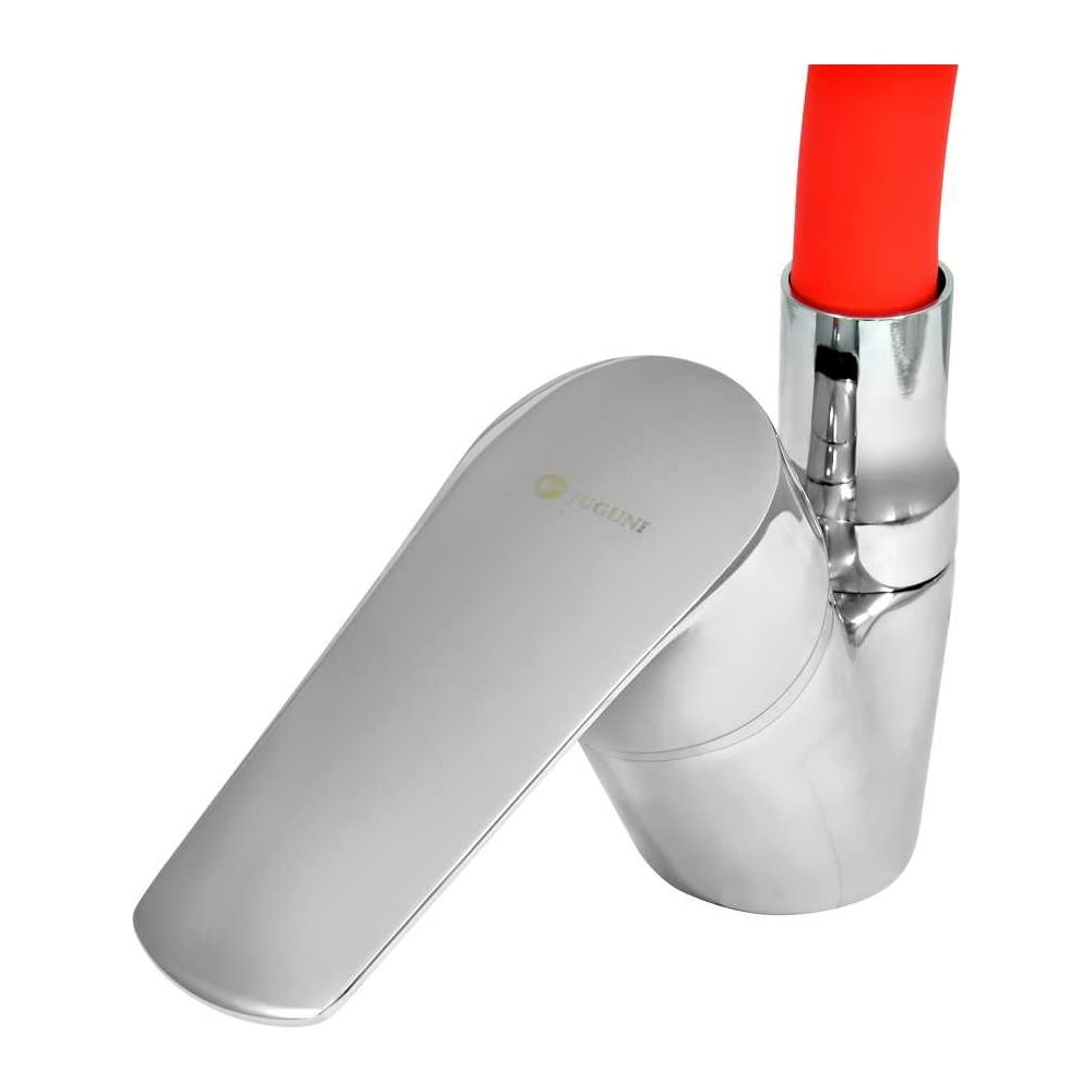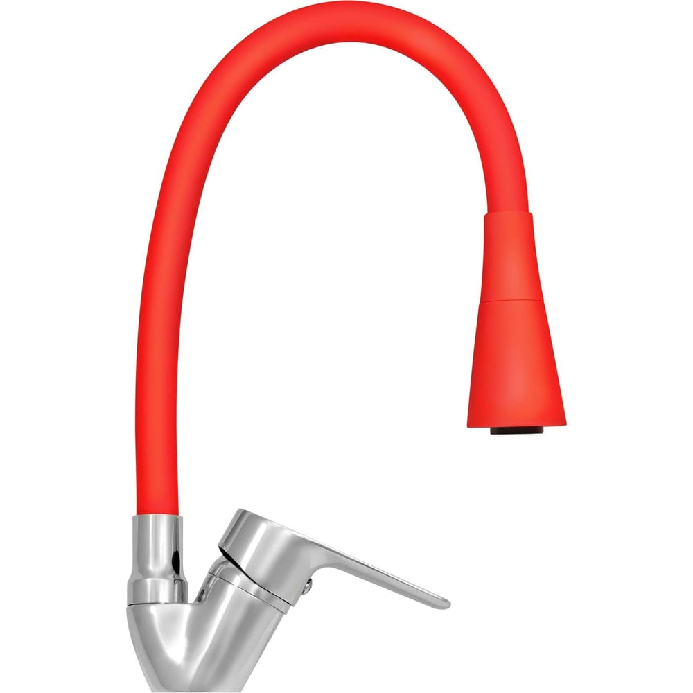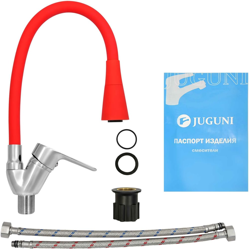 Смеситель для мойки Juguni одноручный, с гибким изливом, 2 режима (красный), гайка 0402.149