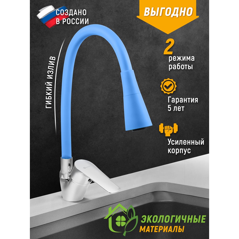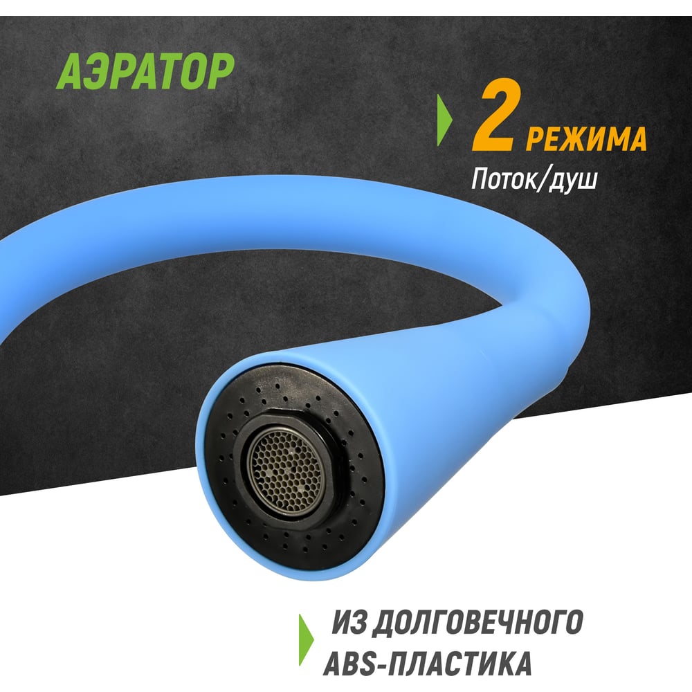 Смеситель для мойки Juguni одноручный, с гибким изливом 2 режима (синий), креп. гайка, 0402.151