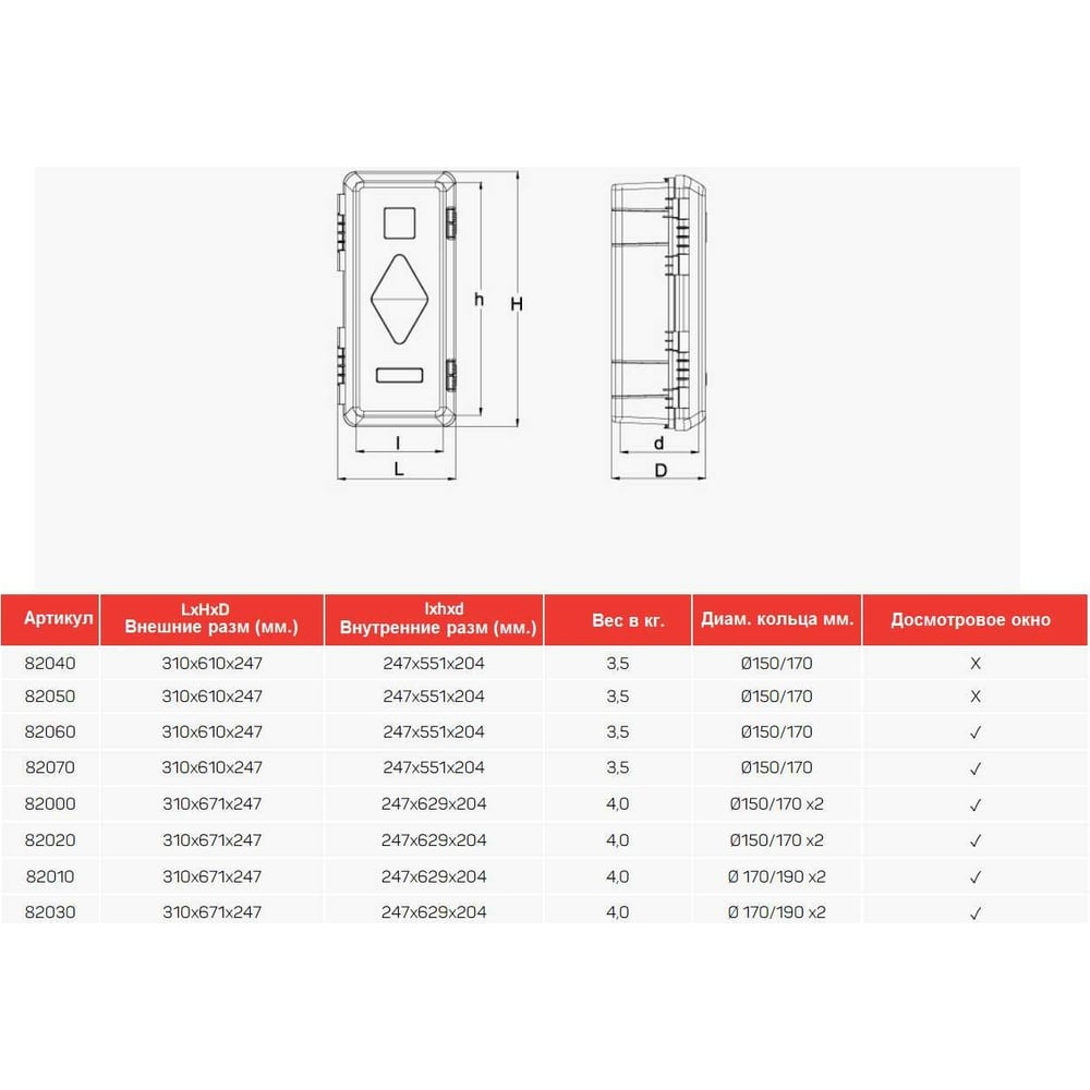 Пенал под огнетушитель DAKEN ADAMANT, пластик, 6 кг, 150-170 мм 82070