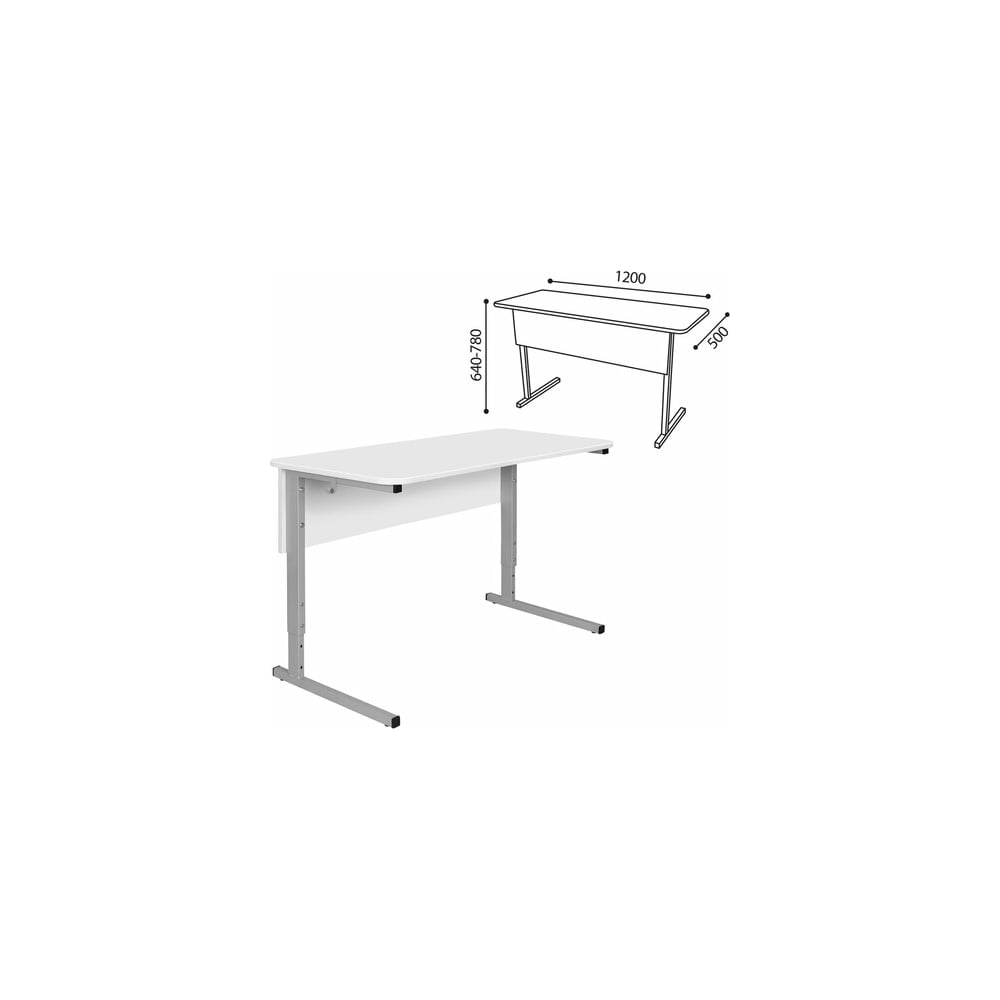 Стол-парта ДЭМИ 2-местный регулируемый Сут.55, 1200x500x640-780 мм, рост 4-6, серый каркас, ЛДСП белая 532714