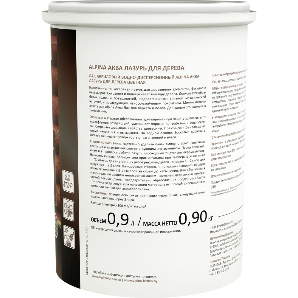 Лазурь для дерева ALPINA Аква (рябина; 0.9 л) 948103483