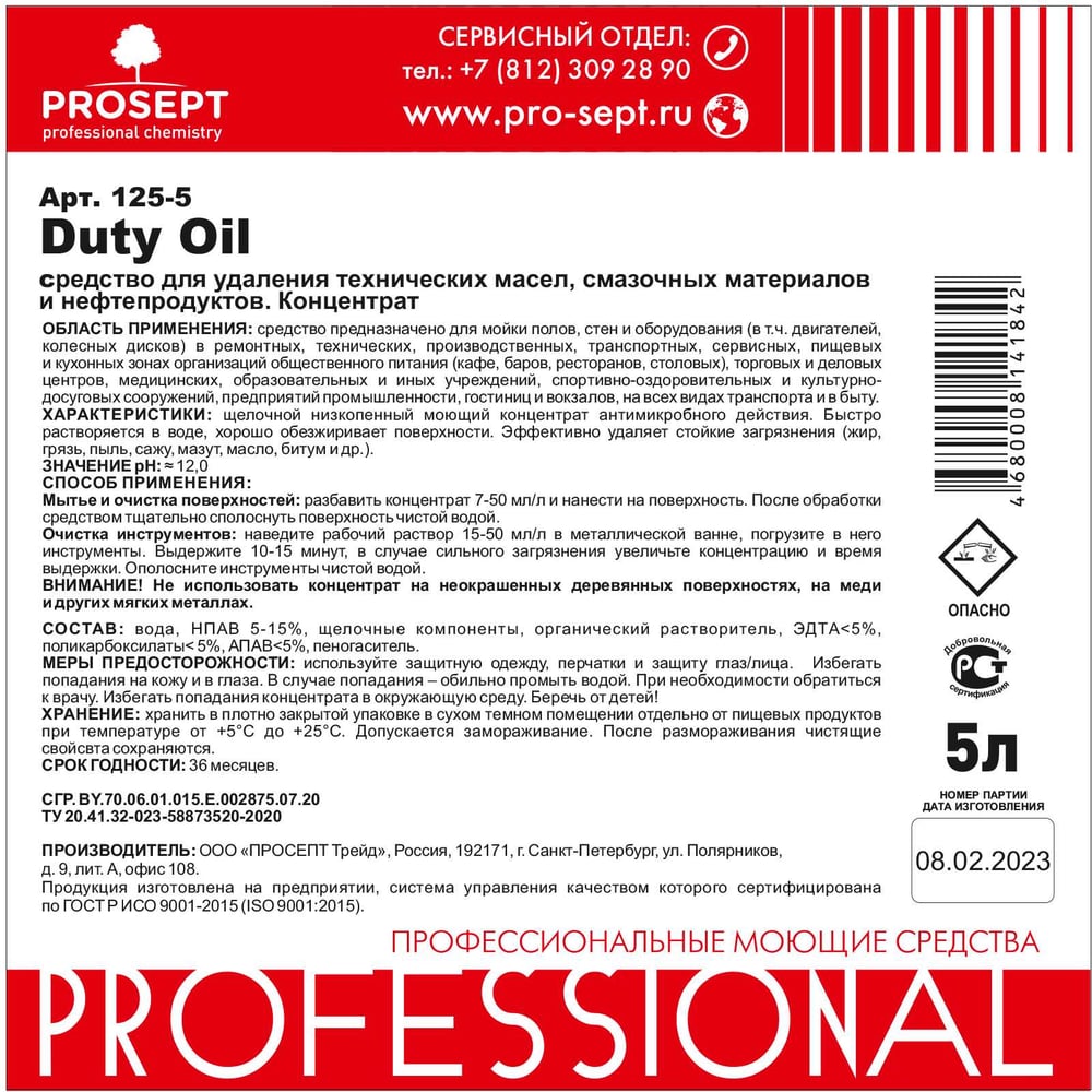 Средство для удаления технических масел, смазочных материалов и нефтепродуктов PROSEPT Duty Oil 125-5