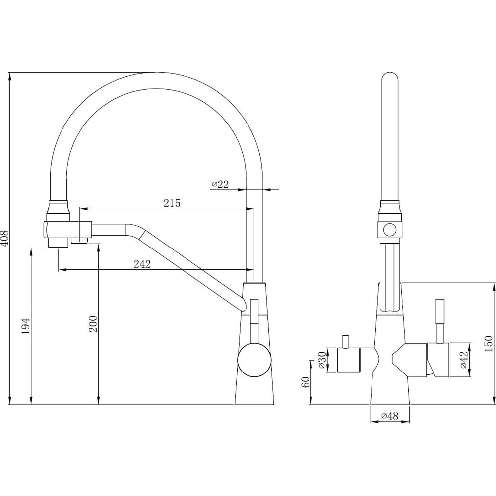 | Высота смесителя | 408 мм |