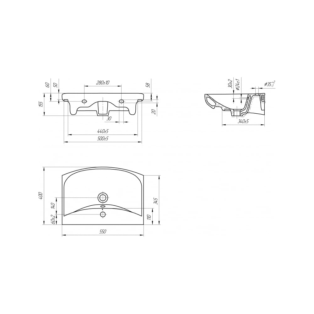 | Ширина раковины | 550 мм |