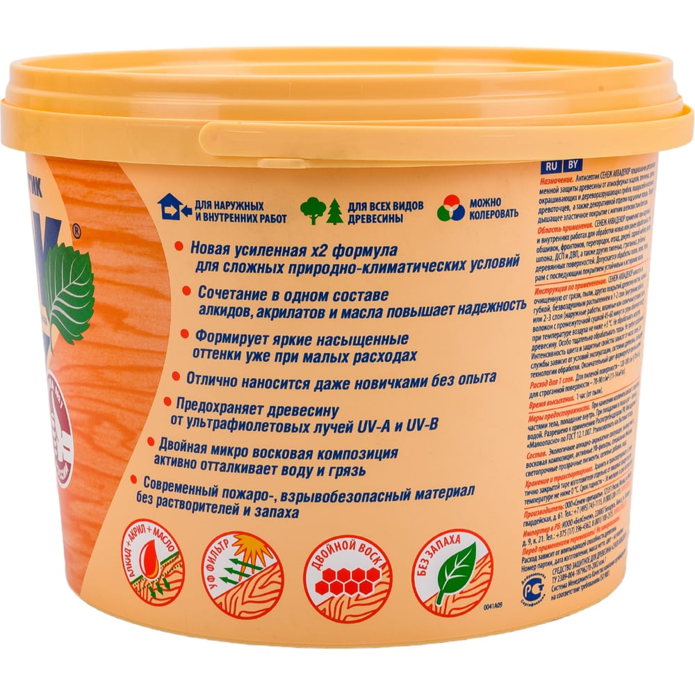 | Состав | состав на алкидно-акрилатной основе с добавлением льняного масла, биоцидов, активных УФ-фильтров, микровосков |