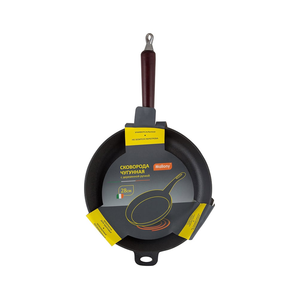 Чугунная сковорода Mallony с деревянной ручкой CIF28-W диаметр 28 см 983005