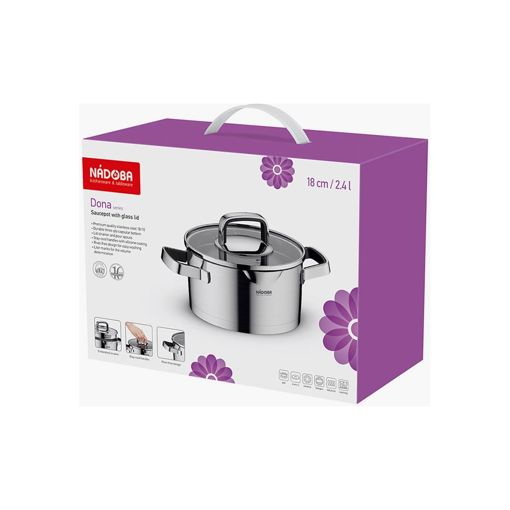 Кастрюля NADOBA DONA со стеклянной крышкой, 18 см/2,3 л, 726113