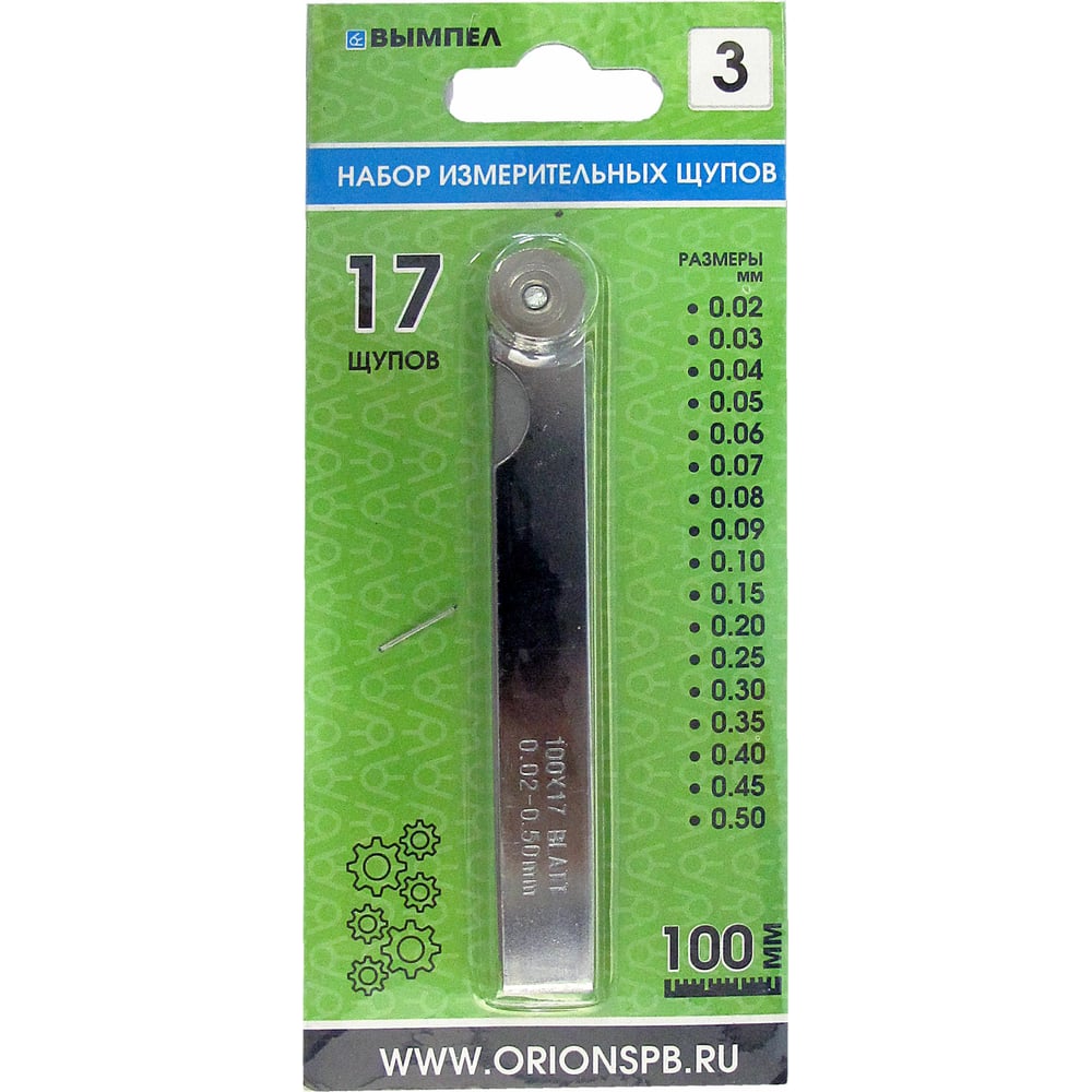 Набор щупов Вымпел №3 0.02-0.50 мм, 17 щупов, 100 мм 5196