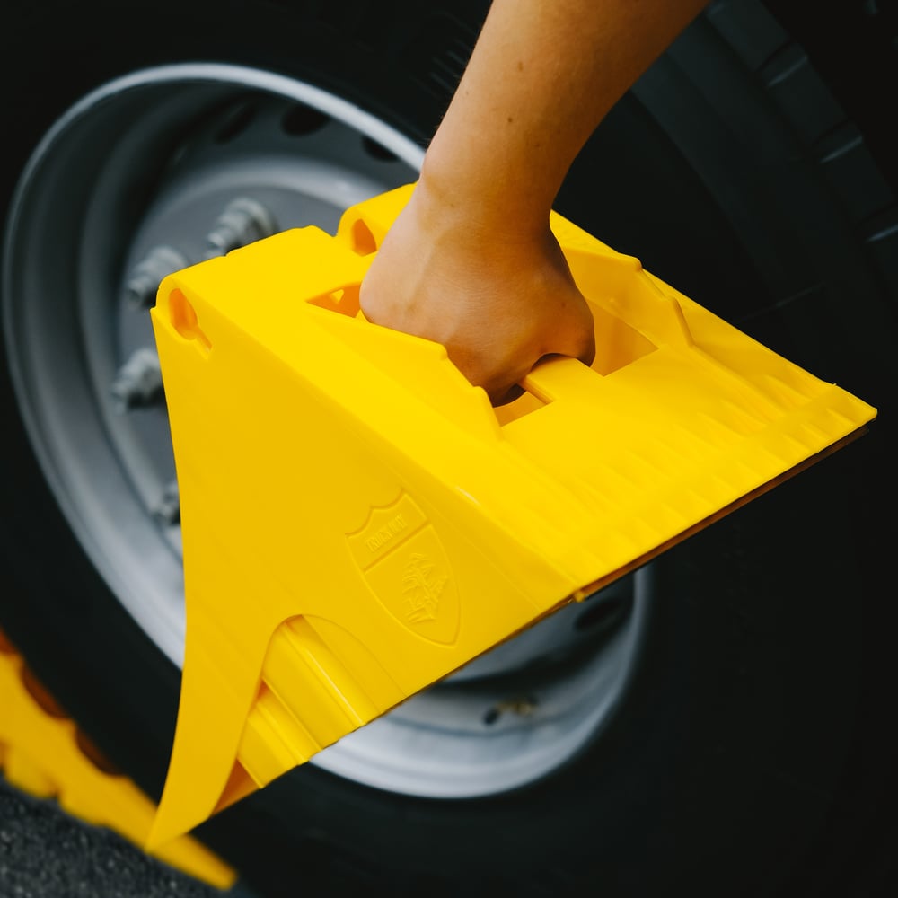 Противооткатный упор для грузового транспорта Autofamily TRUCK WAY G53 с противоскользящей стальной пластиной, желтый TW.G.53.01.02