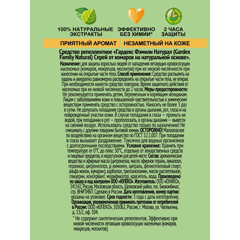 Спрей от комаров на натуральной основе Gardex Natural 110 мл NEW 2018 24 0165