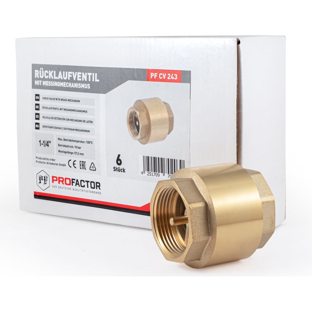 Обратный клапан PROFACTOR с латунным штоком, в/в 1 1/4" PF CV 243