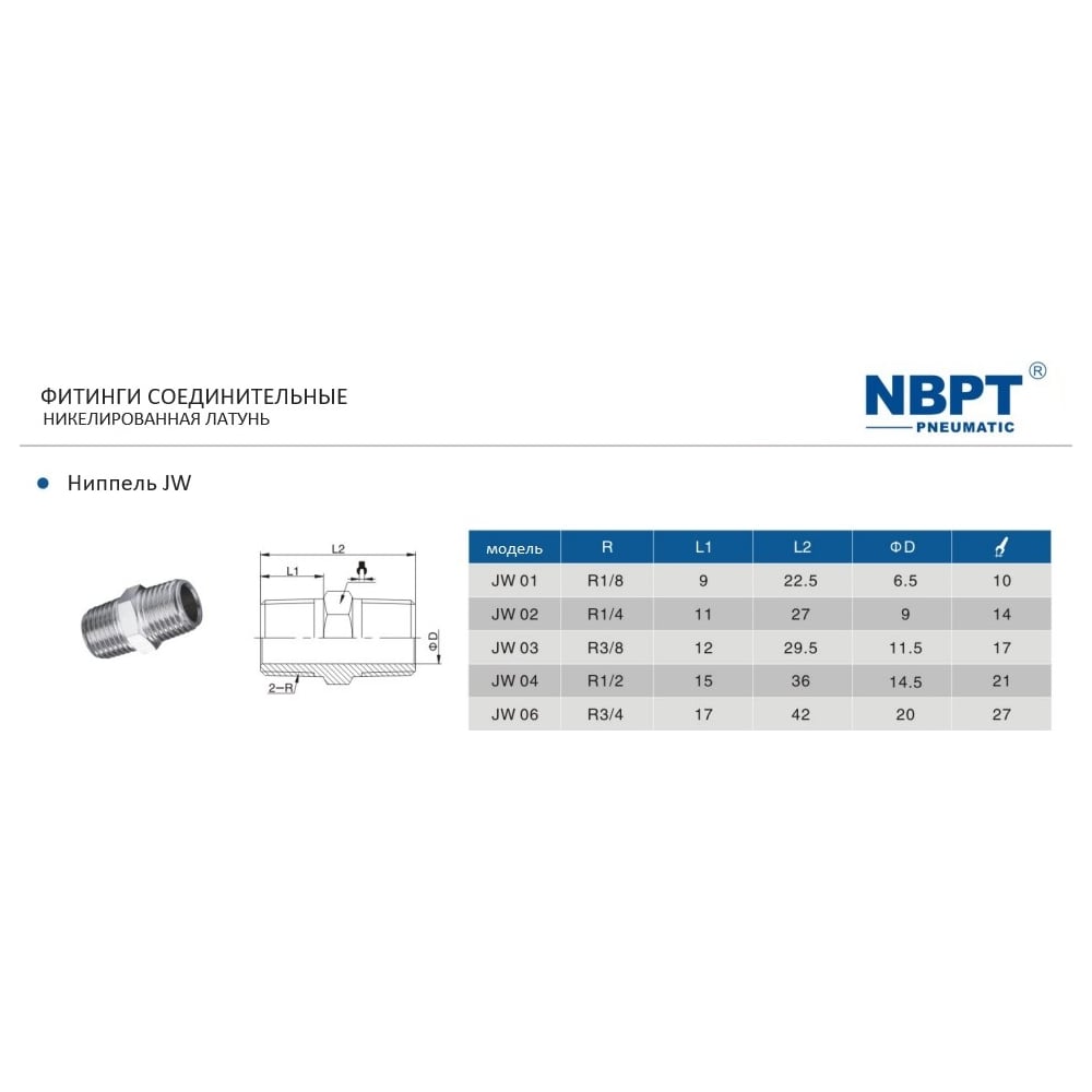 Ниппель JW наружная резьба 1/8 NBPT 53980