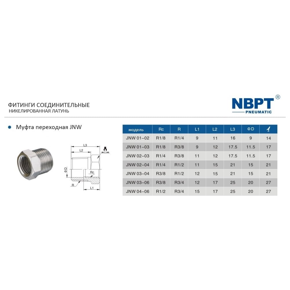 Муфта переходная JNW внутренняя резьба 1/8-1/4 NBPT 54291
