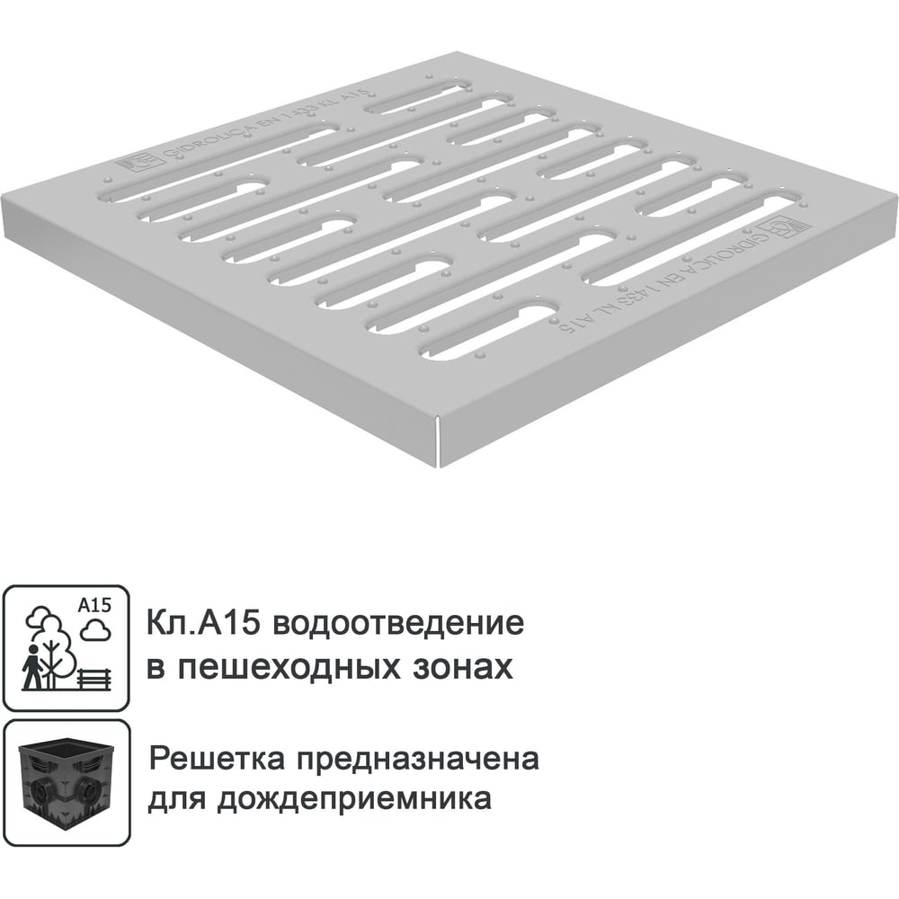Решетка водоприемная для дождеприемника Gidrolica 30x30x30 см, штамп. стальная оцинк., кл. А15 200/1