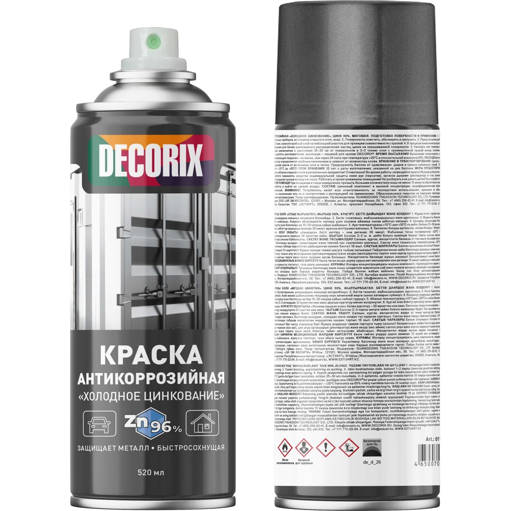Аэрозольная краска Decorix (антикоррозийная; для защиты металла; цинк 96%; холодное цинкование; матовая; 520 мл) 0114-03 DX
