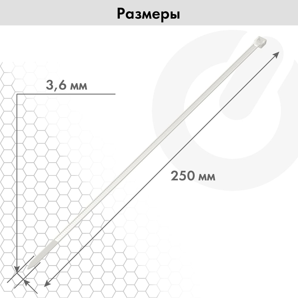 Длина 250 мм Материал нейлон Ширина 3.6 мм Цвет белый Тип стяжка ГОСТ нет Фасовка 100 шт Многоразовые нет С маркировочной площадкой нет С отверстием (под саморез) нет С клипсой нет С двойным замком нет Стойкость к ультрафиолету да Температура монтажа Min -20 °С Температура монтажа Max 60 °С Рабочая температура Max 85 °С Рабочая температура Min -25 °С