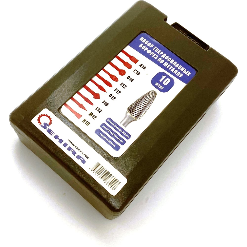 Набор бор-фрез твердосплавных из 10 шт. (A10,C10,D10,E12,F12,G12,J10,L12,M12,N10) х 6 мм Х-образная насечка Sekira 00-00018050